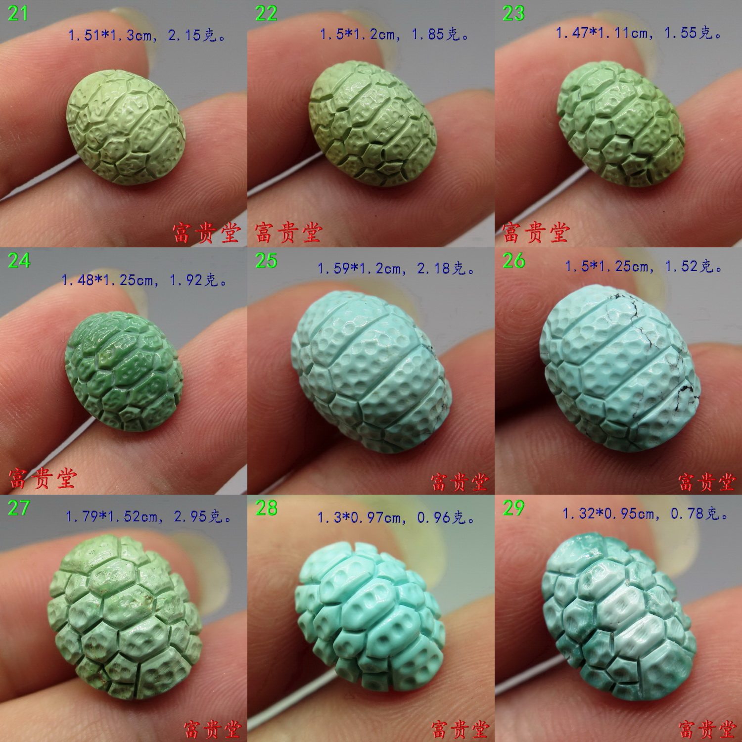 (двадцать один)Задняя часть черепахи составляет 1,51 см, шириной 1,3 см, толщиной 1 см, весом 2,15 грамма,Цена за грамм: 160 юаней.СущностьВысокая фарфоровая глазурь -Крумите, зеленый фон с твердым маслом, деликатные и чистые материалы, изысканная резьба, полная формы черепахи, старая масляная зеленая и неядная в будущем, она очень красива!