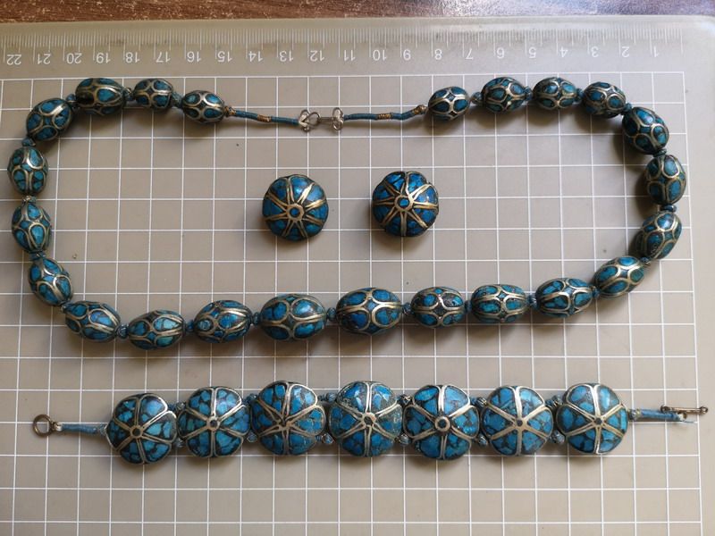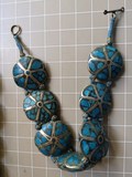 Бирюзовая инкрустация камня, браслет, ожерелье, клипсы, США, серебро 925 пробы