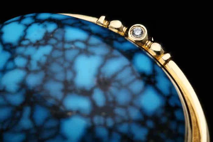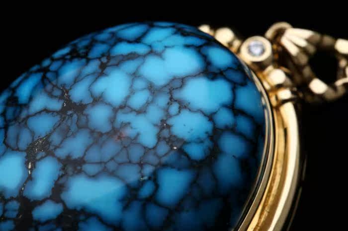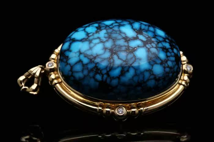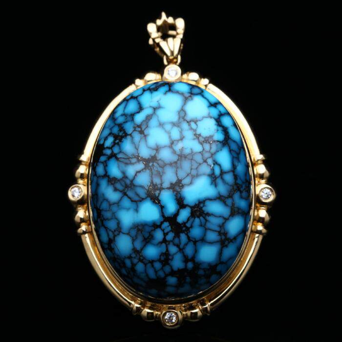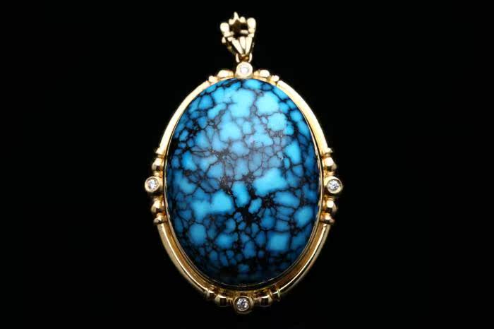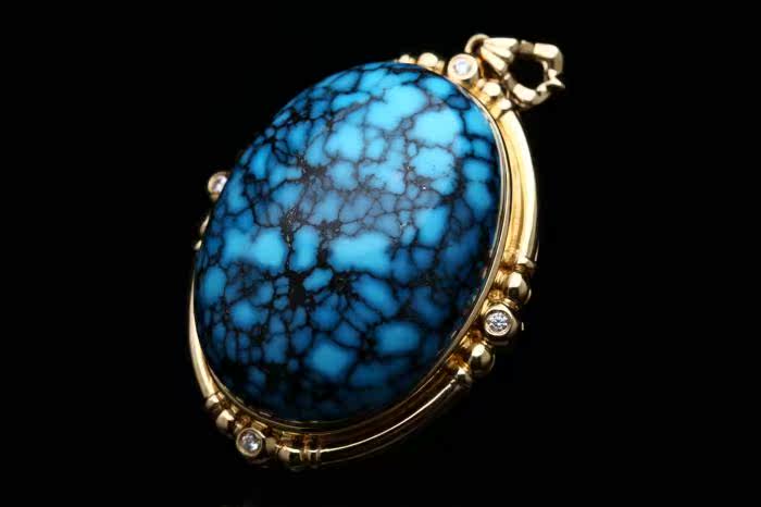 Натуральная бирюзовая природная руда, подвеска, бриллиантовая инкрустация камня, орхидея, золото 750 пробы