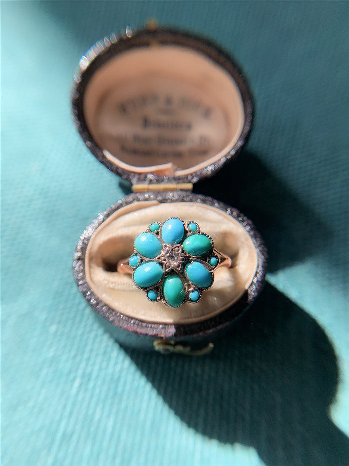 Бирюзовое натуральное кольцо, золото 9 карат, золото и серебро