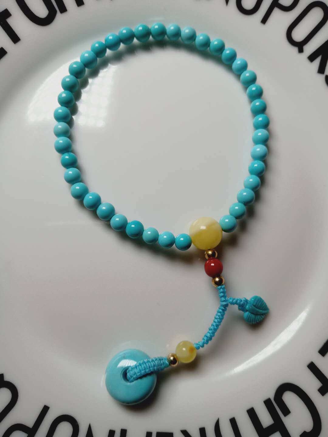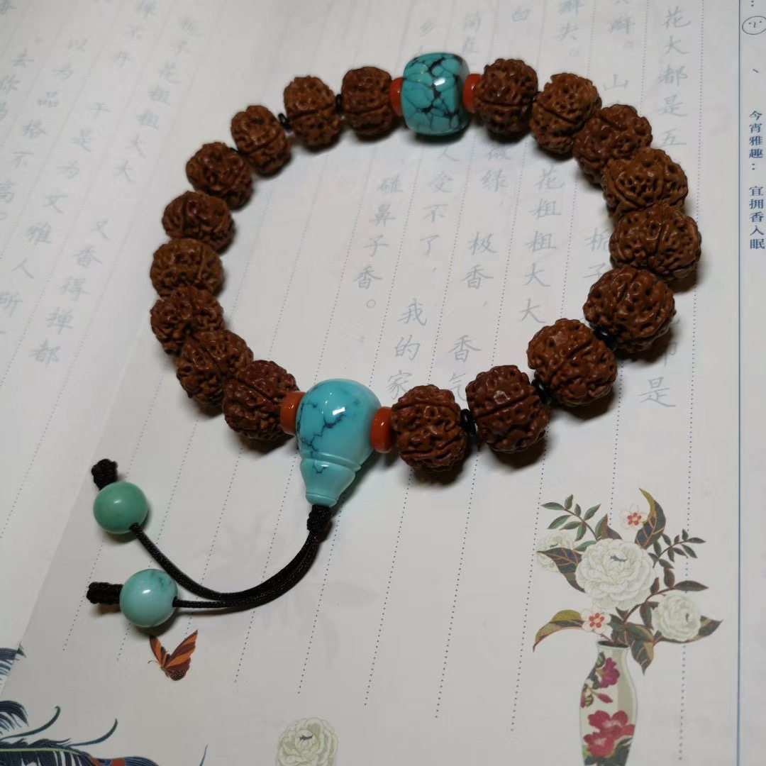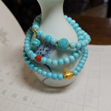 Бирюзовая природная руда, бусины, резное украшение-шарик, ручка, браслет, тройник