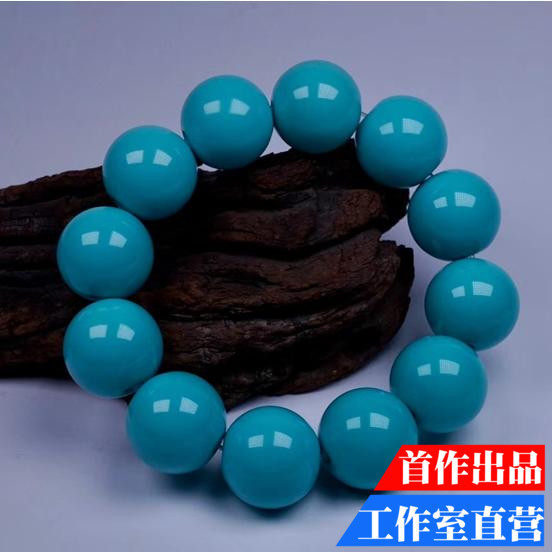 Бирюзовое украшение-шарик из старинного материала, браслет из бусин, диаметр 20мм, 139 грамм