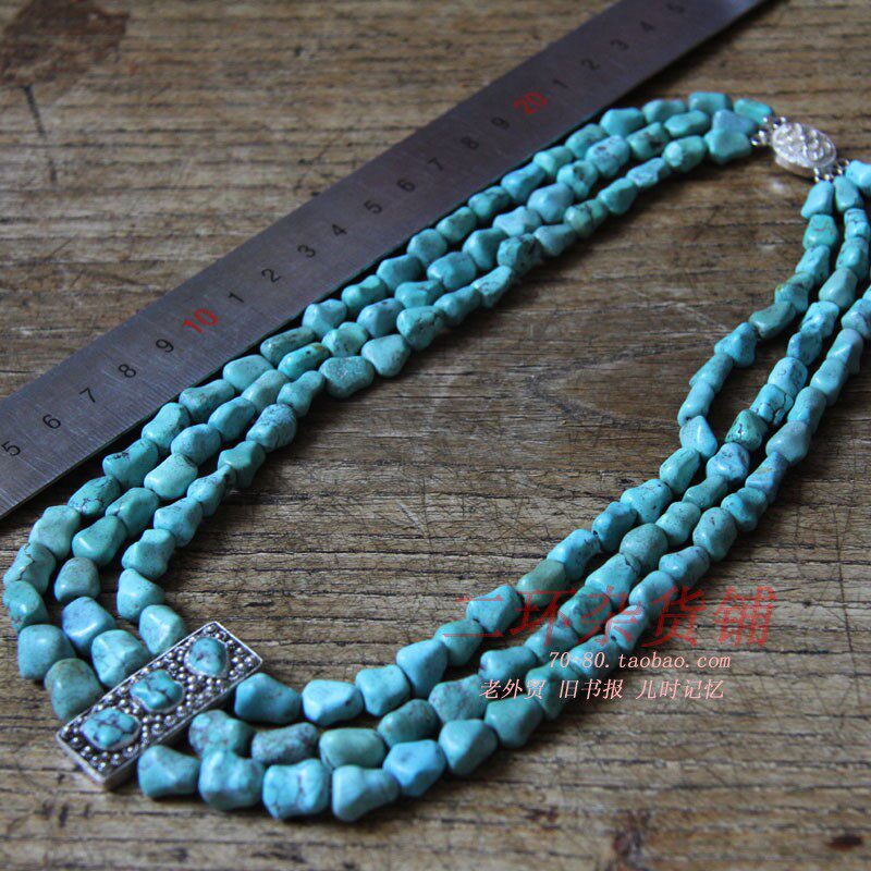 Натуральное бирюзовое ожерелье, 120 грамм, 40см, 80 года