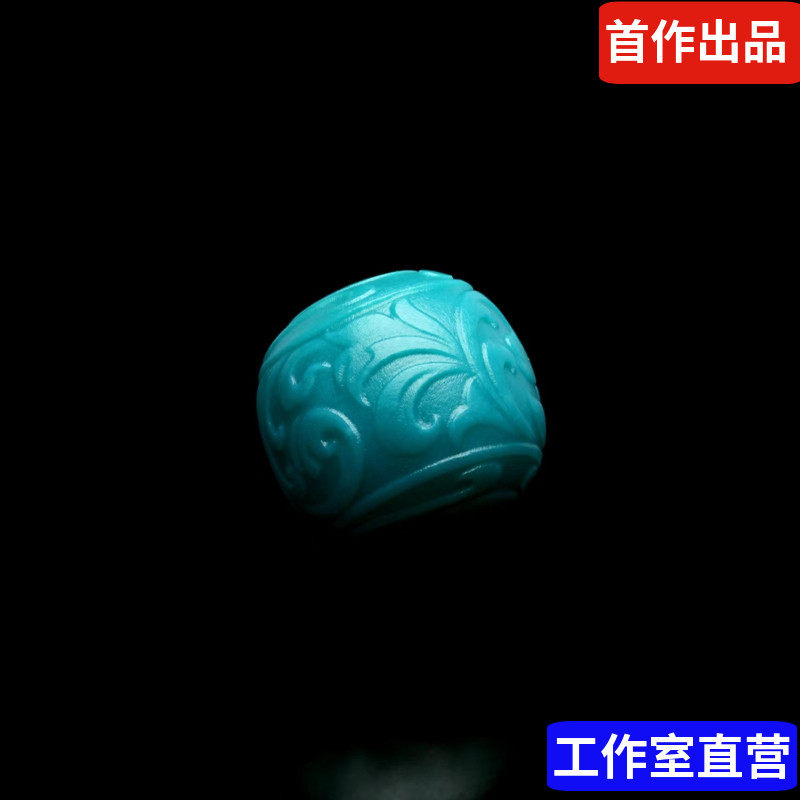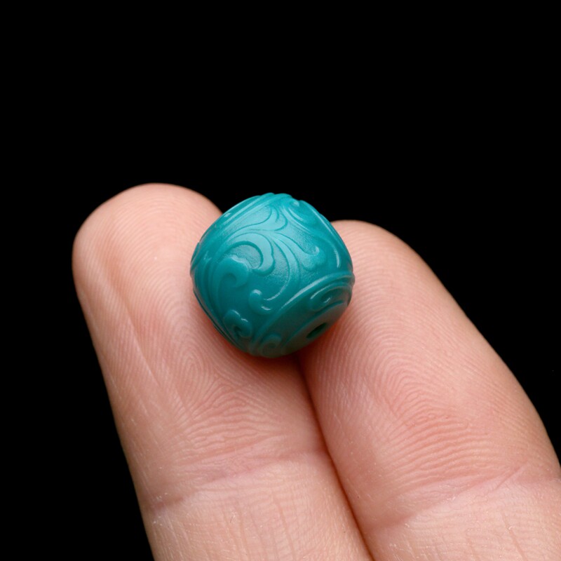 Ши джи искусство впервые произведено резное зеленый камень нефрит, синяя трава с синими тангами старые бусины 13,2 в диаметре 13.2 Бутик нет времени