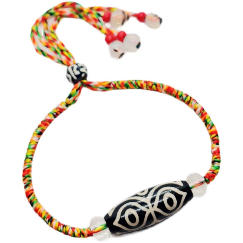 Цветная веревка ручной работы с ромбовидным узлом, регулируемая длина, ручная веревка с несколькими сокровищами, шестиглазые бусины дзи, оригинальные и гладкие.