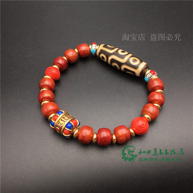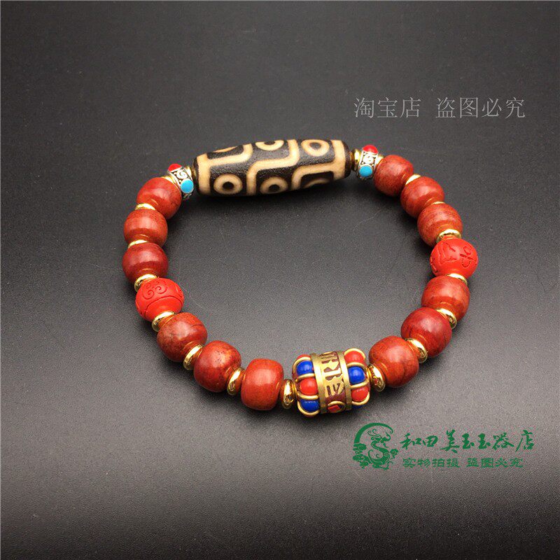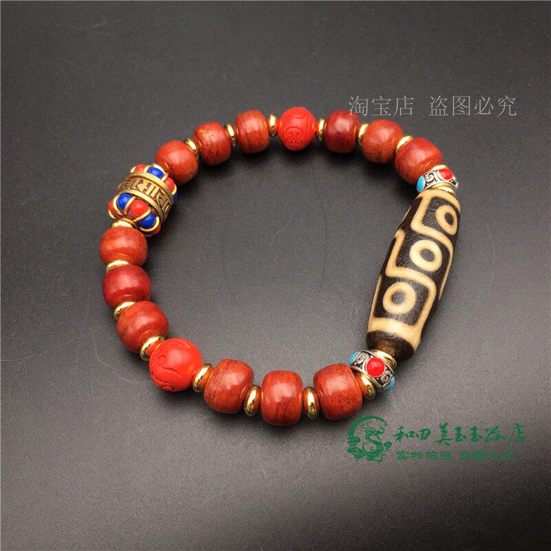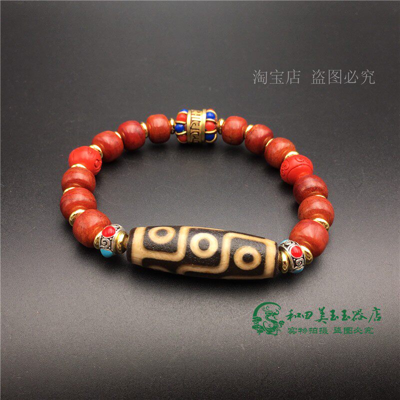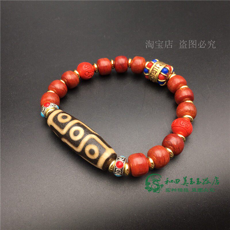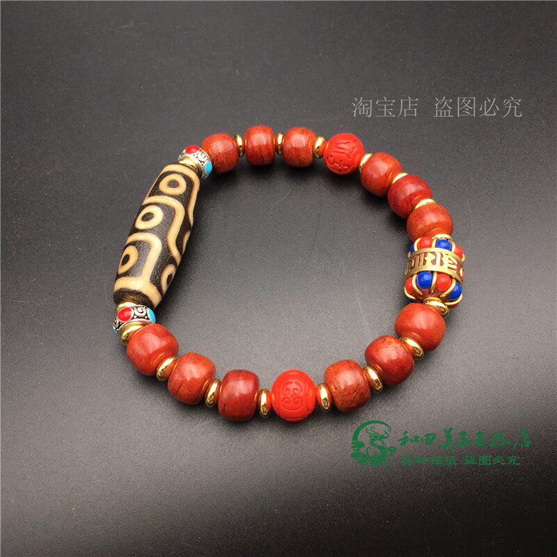 Браслет из бусин Дзи с девятью глазами, натуральный тибетский аутентичный браслет из старинного агата, киновари, кости яка и браслета из мяса, коллекция бутика