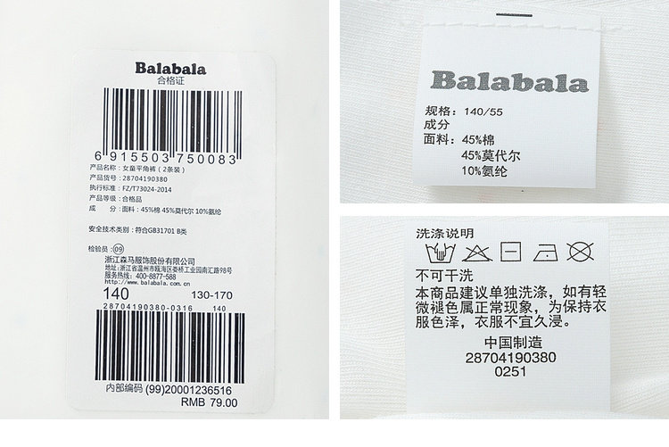 巴拉巴拉 Зимнее нижнее белье, детские шорты, подходит для подростков
