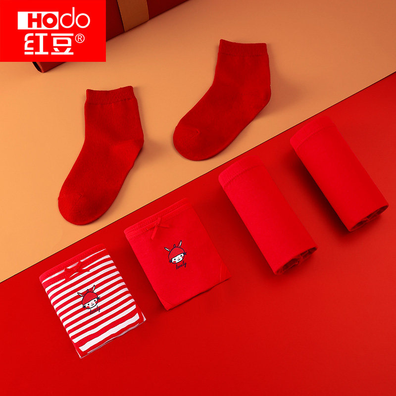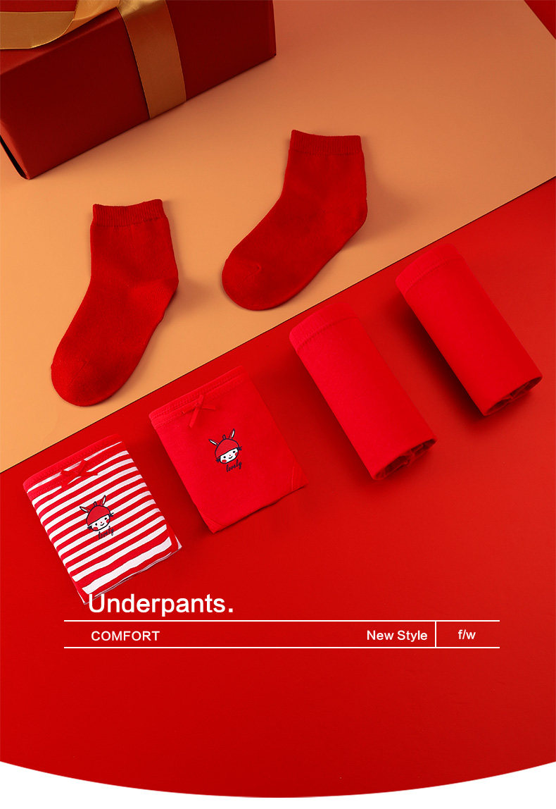 Детское красное нижнее белье для мальчиков, детские боксерские штаны, носки для школьников