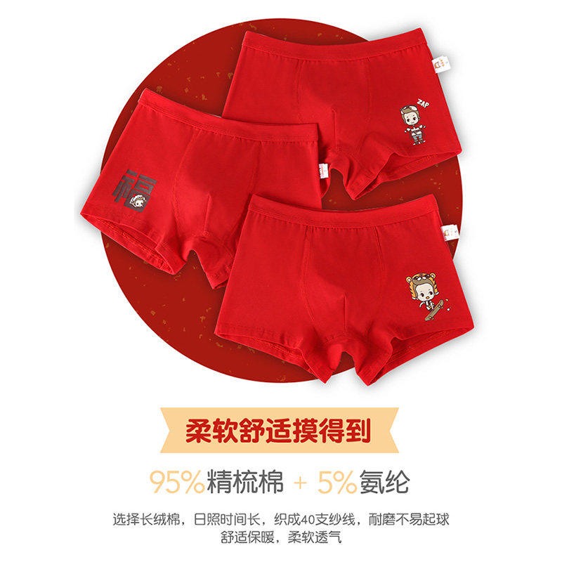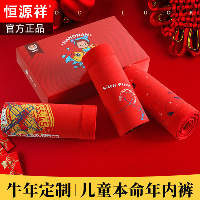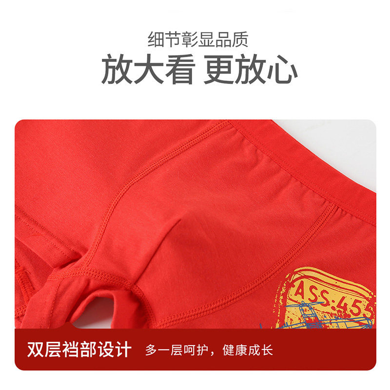 恒源祥 Детское нижнее белье, красная раскраска, хлопковый оберег на день рождения для мальчиков, шорты, 12-15 лет, подходит для подростков