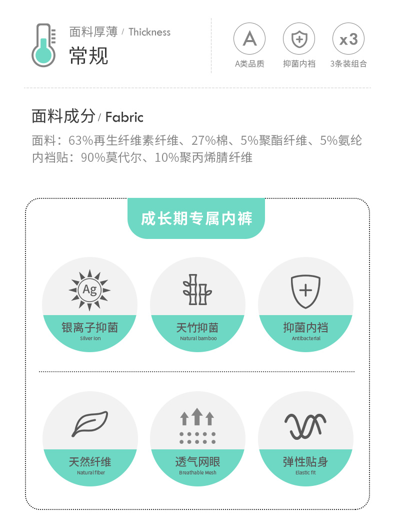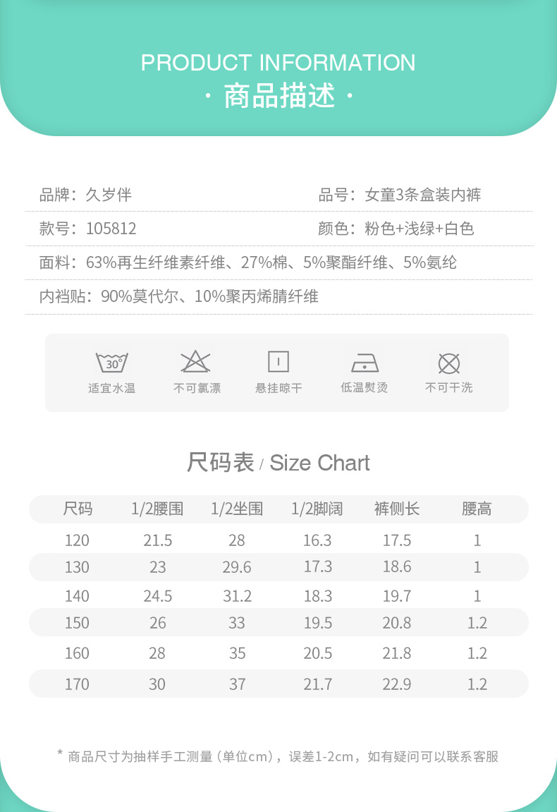 久岁伴 Детские трусы, штаны, антибактериальные шорты, подходит для подростков