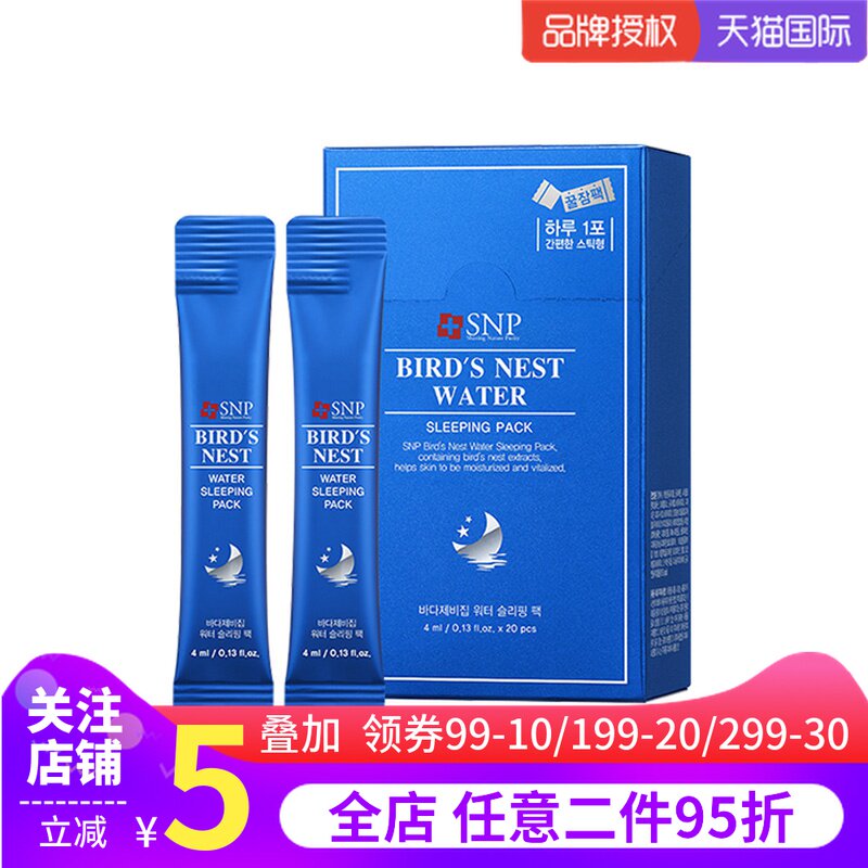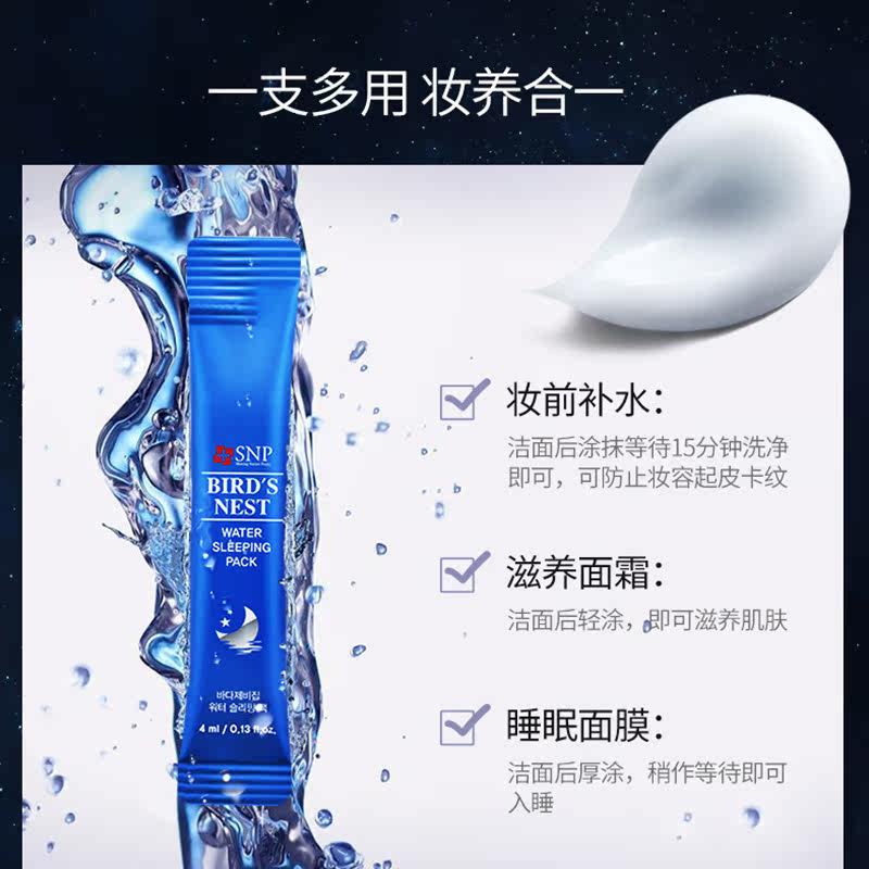 SNP Ночная увлажняющая разглаживающая осветляющая маска для лица, осветляет кожу, сужает поры, легкое нанесение, 4 мл, 20 шт