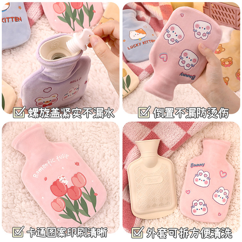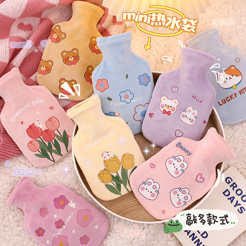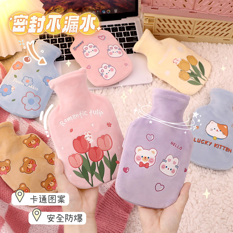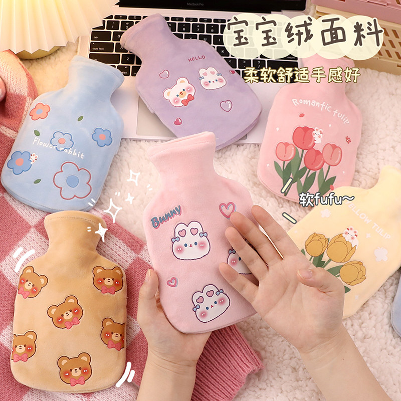 Грелка, наполненная водой. Бутылка с горячей водой. Милая плюшевая грелка для рук. Девушки используют теплое дворцовое одеяло, чтобы прикладываться к боли в животе и менструальным спазмам. Грелка для рук.
