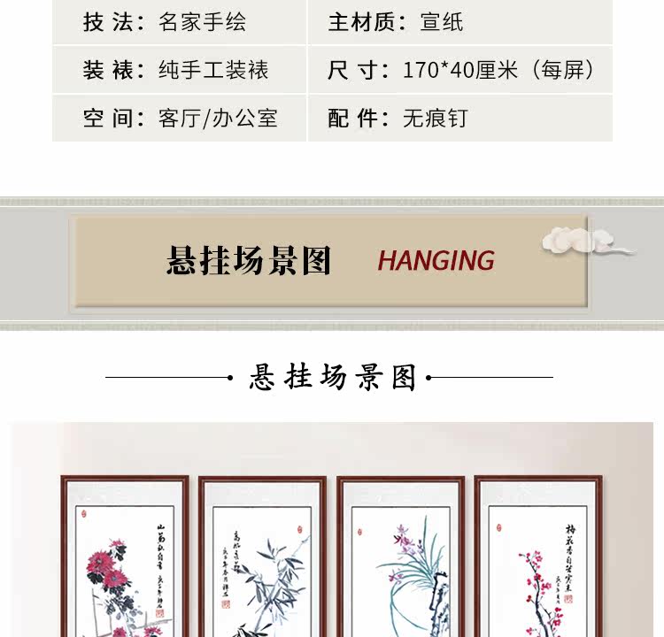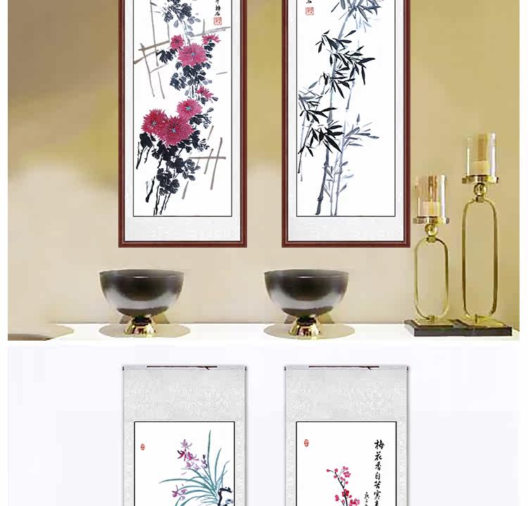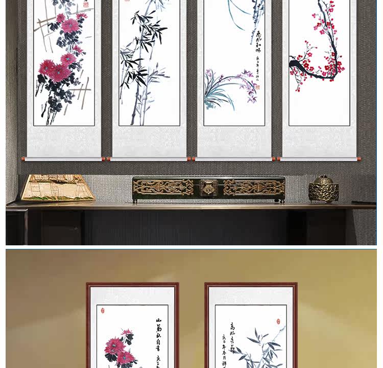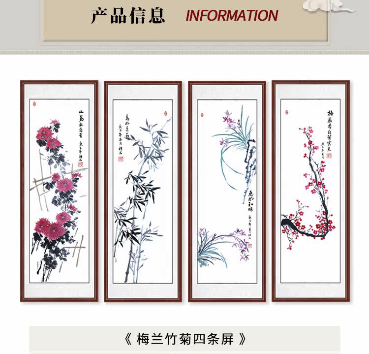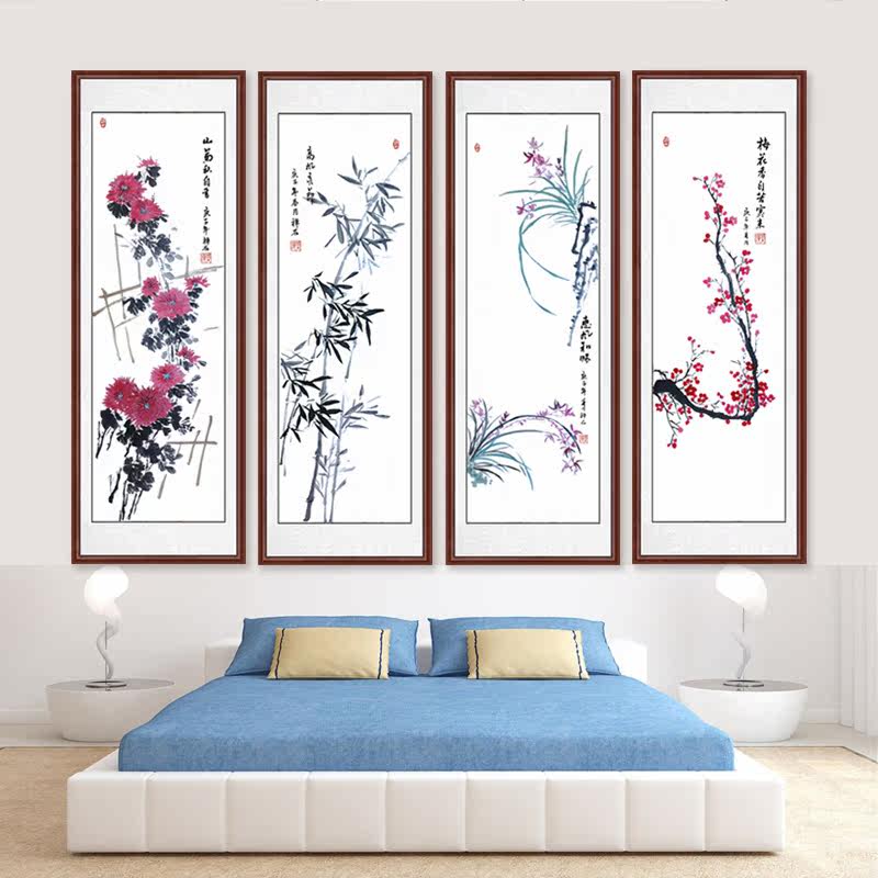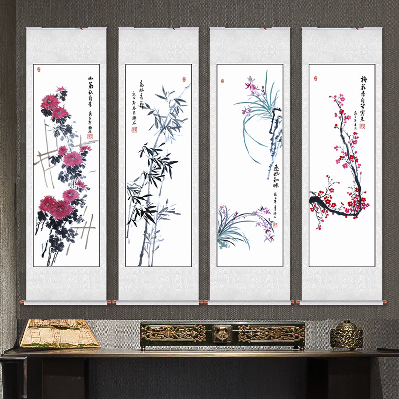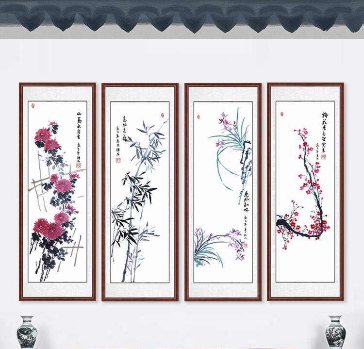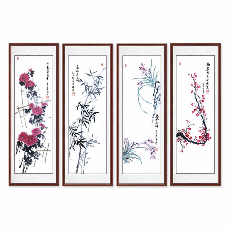 Китайская живопись Meilan Bamboo Chrysanthemum четыре джентльмена с четырьмя экранами.