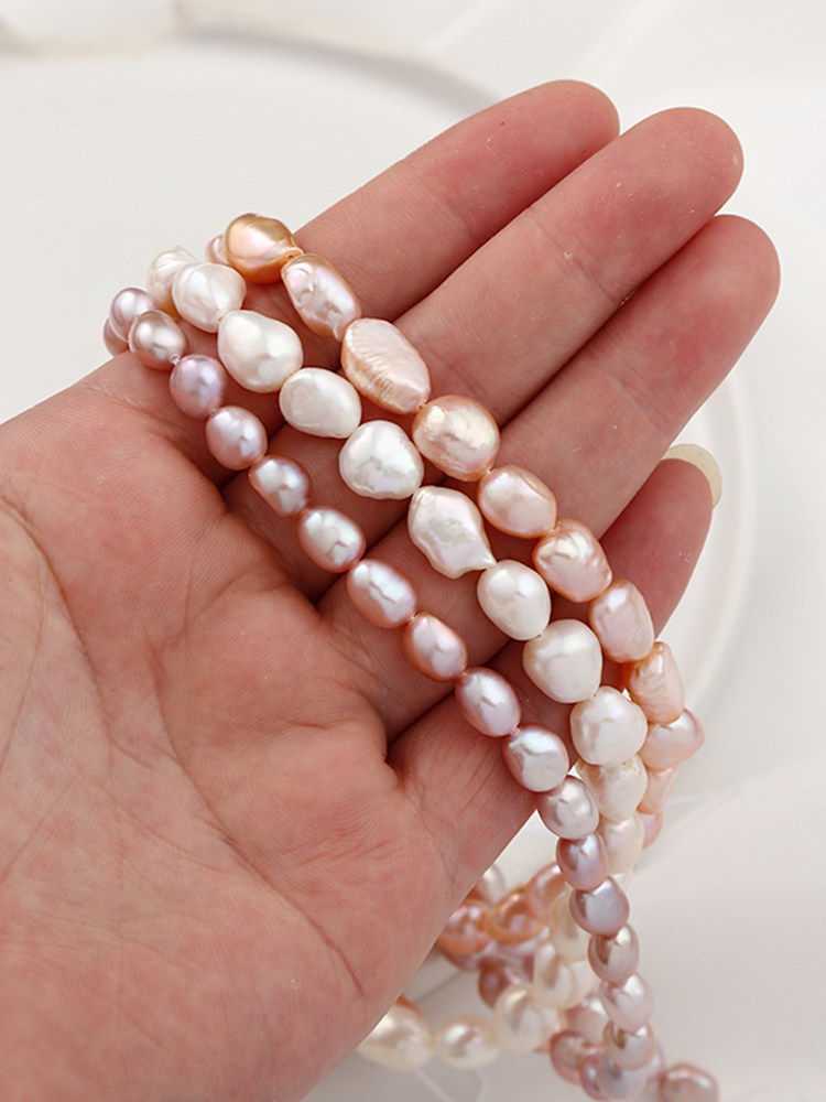 Рисовые бусины 6-7 мм. Длина составляет около 38 см, один кусок из 45 пор составляет около 0,8 мм