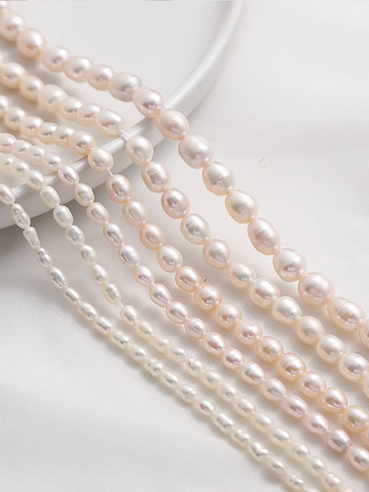 4-5 мм рисовый бусин Длина составляет около 36 см, один кусок из 57 пор составляет около 0,6-0,7 мм