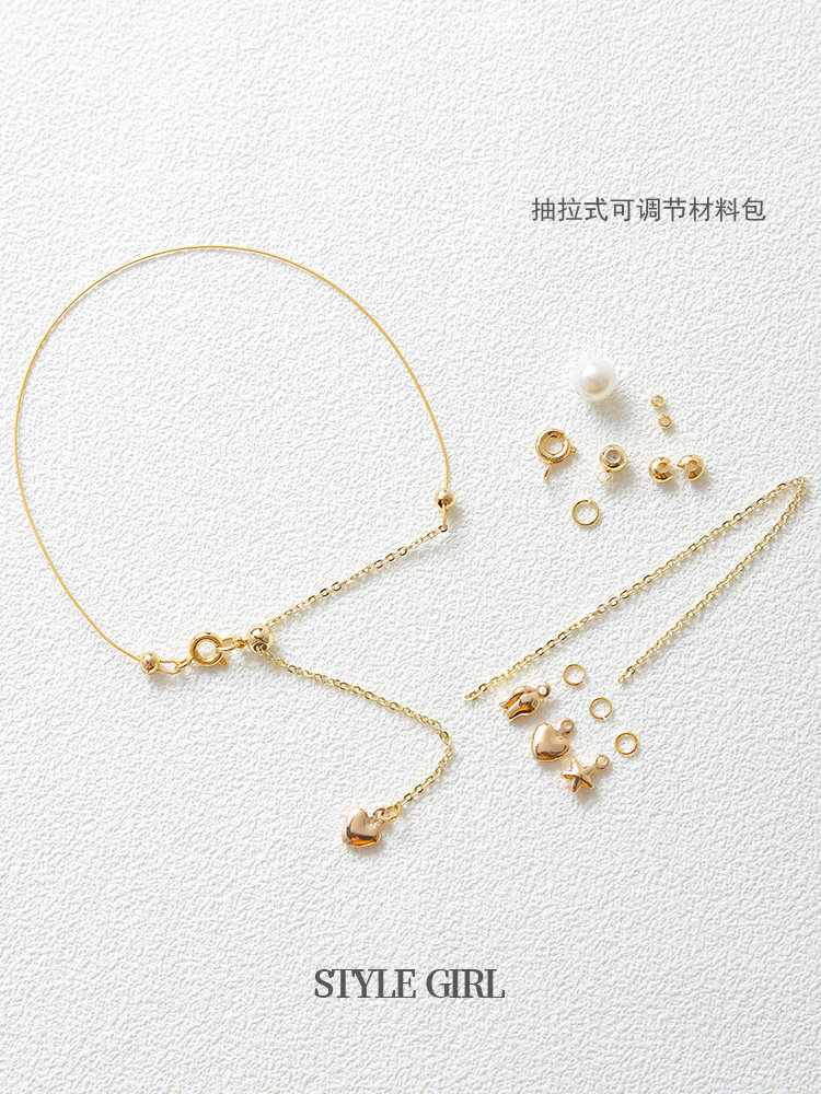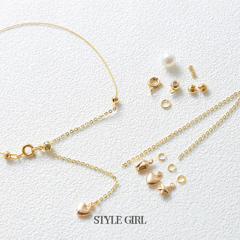 Браслет, ожерелье, цепь из жемчуга с бусинами, цепочка с аксессуарами, набор материалов, 14 карат, золотой цвет, DIY