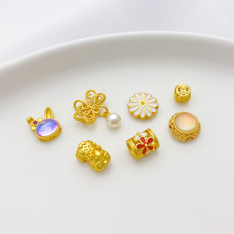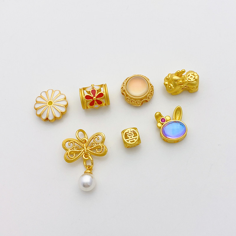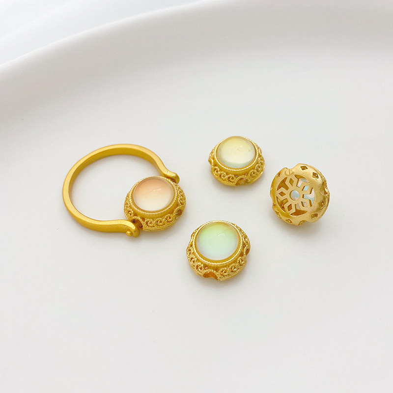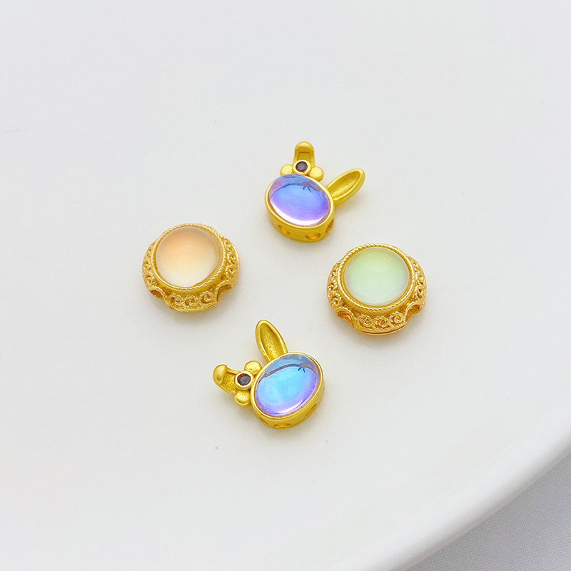 Древнее французское золото, лунный каменный кролик, цветок Дейзи, богатство, большие отверстия.