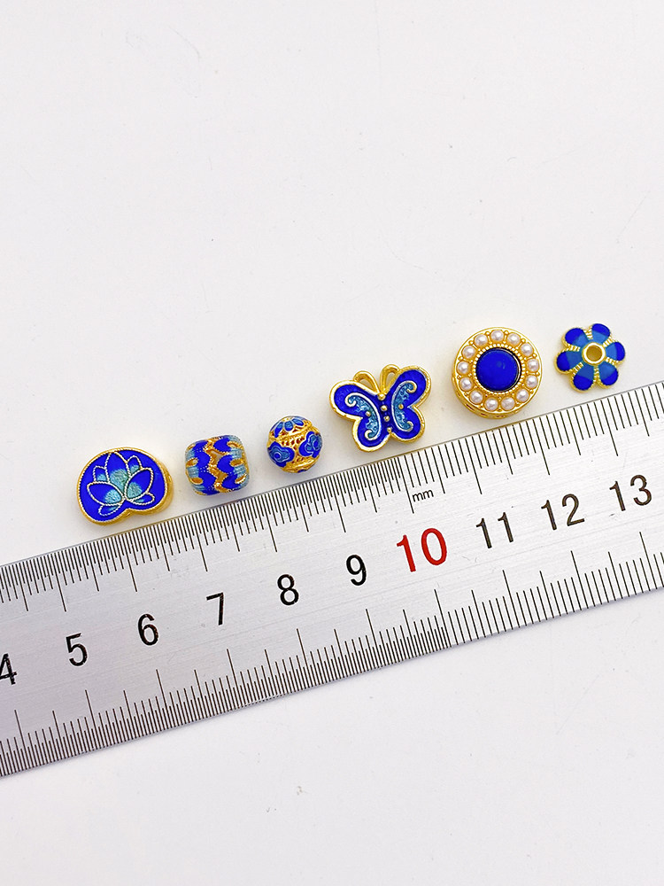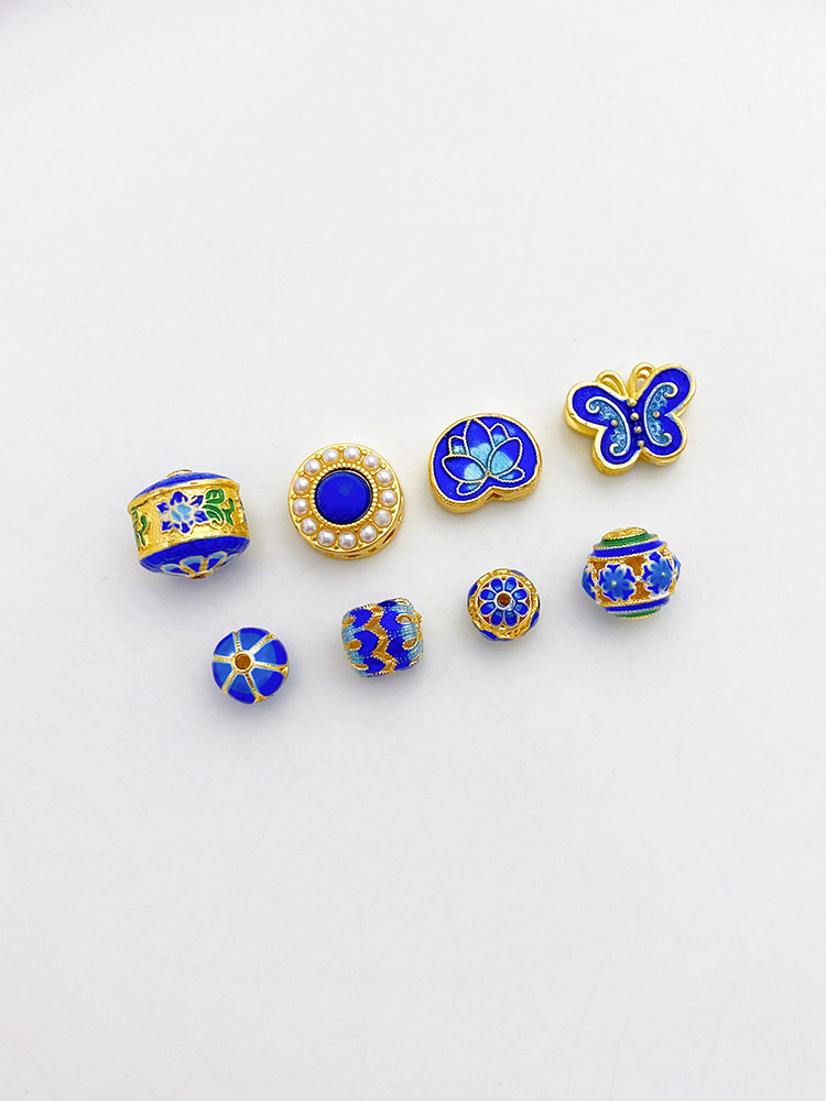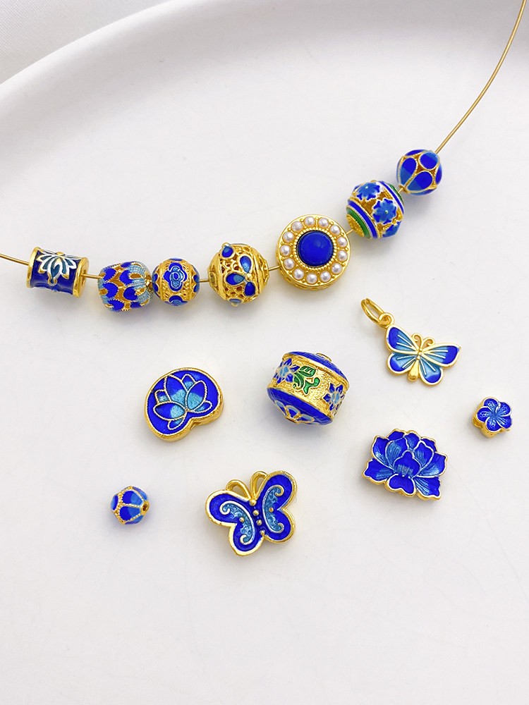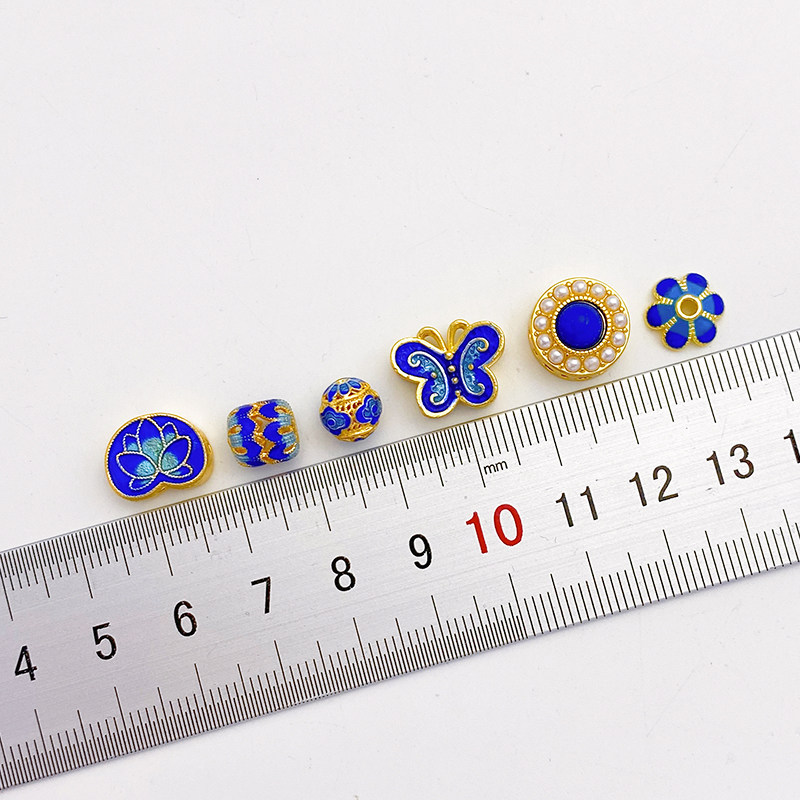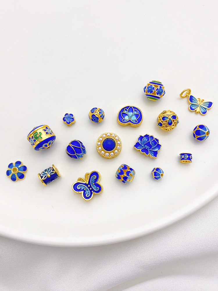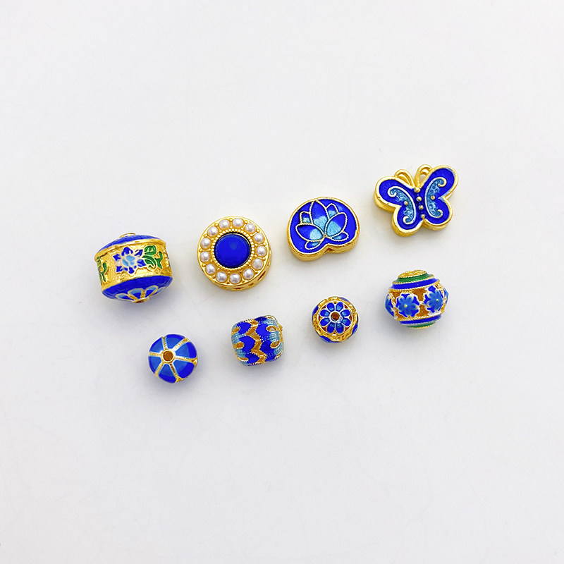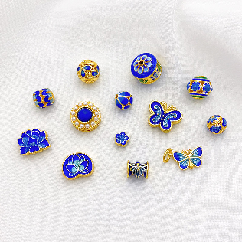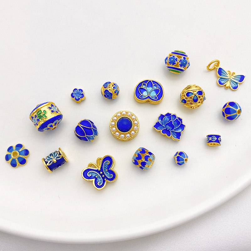 18K Cloisonne Blue Lotus Butterfly Trip Trip Bead Beads Beads Beads
