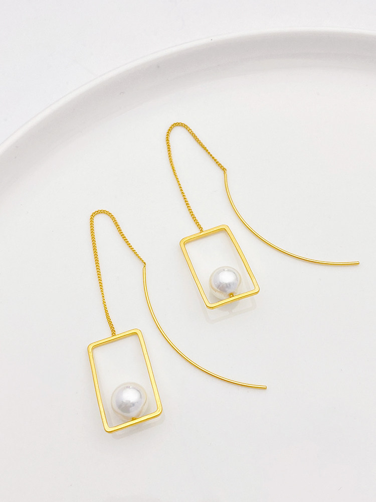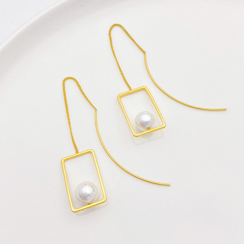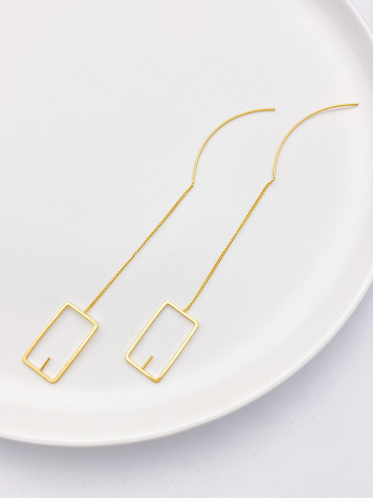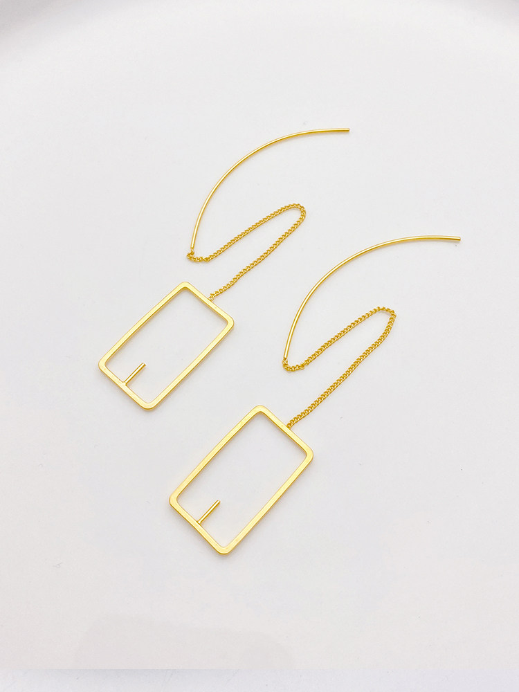 Геометричные прямоугольные серьги, цепочка ручной работы, аксессуар, аксессуары, 18 карат, золотой цвет, DIY