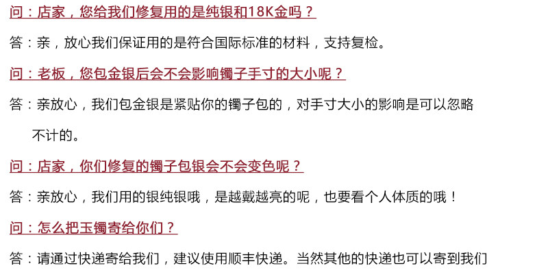 Фактическая золотая валентная валентность=окончательноНефритовый браслетОбщий-Нефритовый браслетмасса=Золотой вес*Помещение денежной цены в тот день(ПримечаниеПеревод: наша цена отчетности о золоте - это цена золота, которая содержит убытки, и дополнительной платы за убытки не взимается.Потери, вызванные полировкой и полировкой во время инкрустированного производственного процесса, что вызвало неизбежные потери)