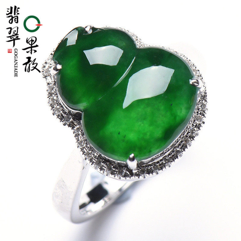 Изумрудное солнечно-зеленое кольцо из нефрита, золото 750 пробы
