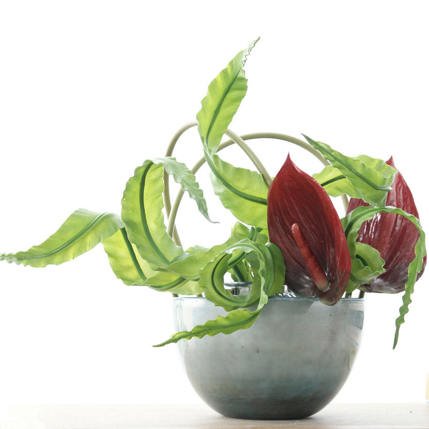 Симуляция белая пальмовая пальма зеленая пальмовая пальма 3D -печать пальмовая цветочная пленка непреднамеренная фальшивая цветочная цветочная крана с высоким классом