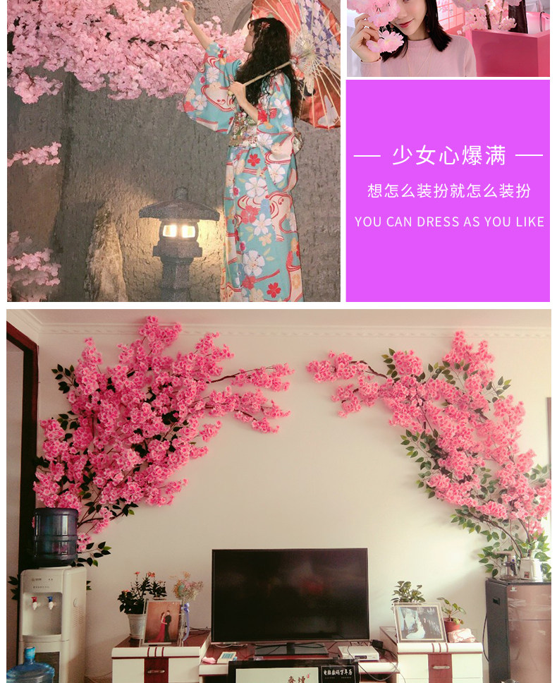 Симуляция вишневого дерева крытый потолочный воздух -кондиционирование декоративный пластиковый фальшивый цветочный виноград