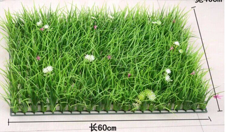 Пластиковая газон с цветочной крытой фальшивой травой кожа зеленая стена посадки, высокая трава плюс крипто -окон