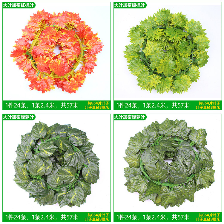 Имитация виноградных листьев, потолок из ротанга, зеленые листья деревьев, украшение водопроводной трубы, намотка и блокировка, пластиковые искусственные цветочные лозы