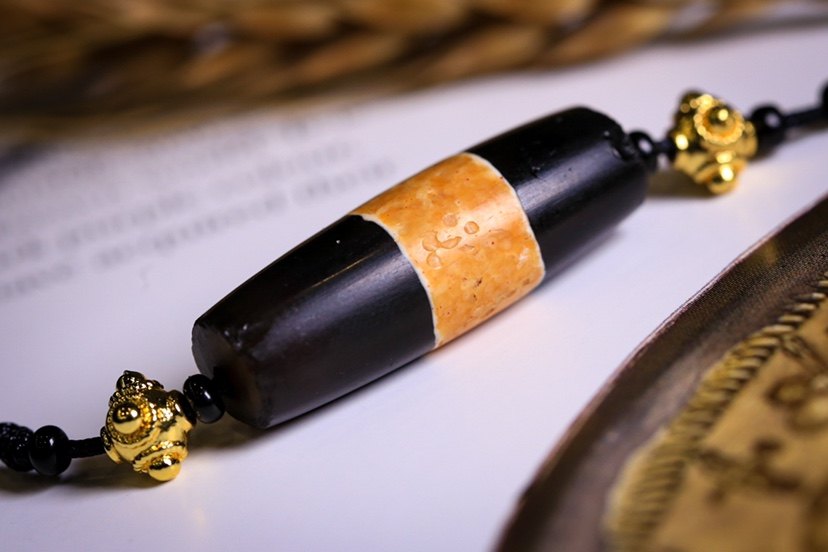 Тысячелетие инкрустировано черно -белыми бусинками киннабар