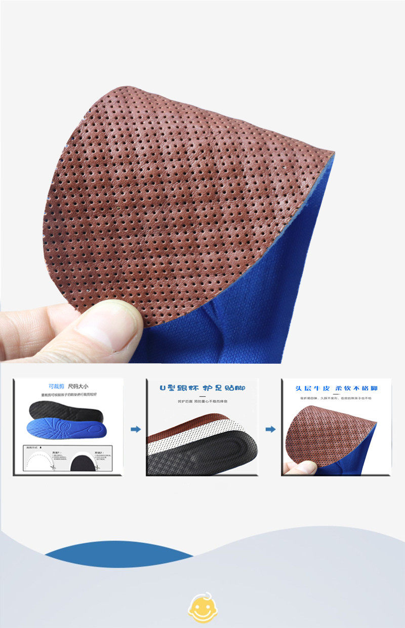 Детские дышащие спортивные стельки для мальчиков, впитывают пот и запах, из натуральной кожи
