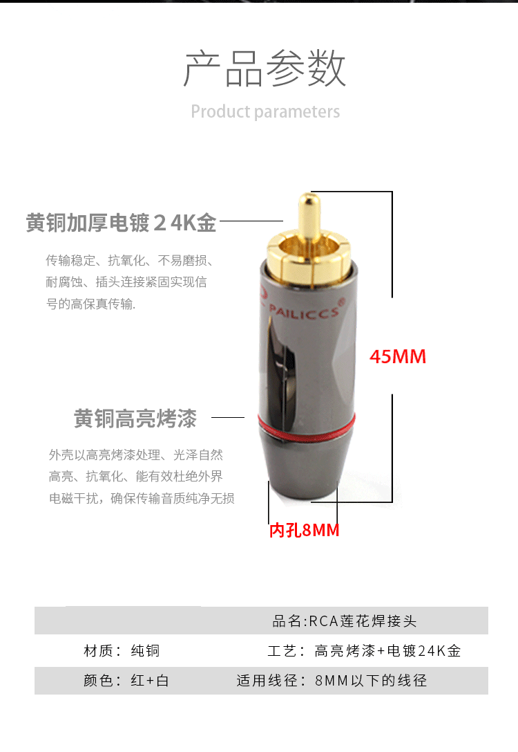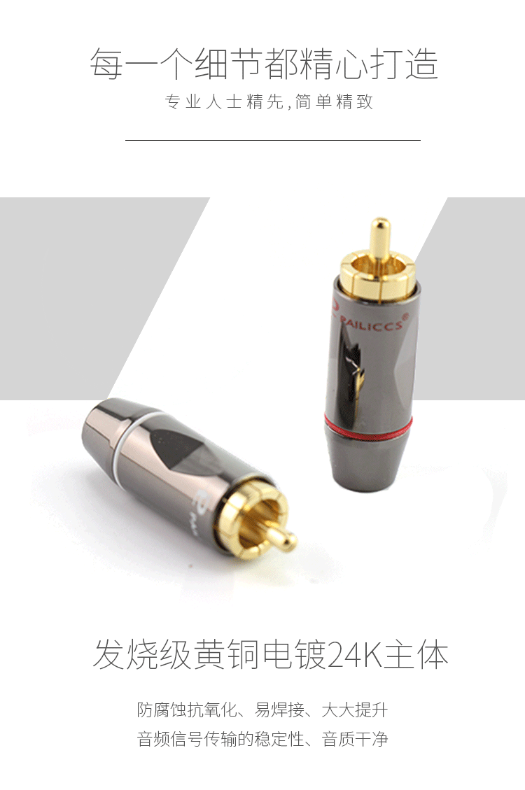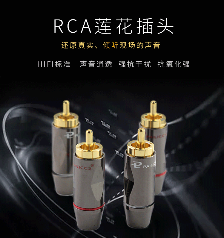 Чистое медное золото, плановая плавка, подключаемое штекер RCA Audio Cable Scule Подключение AV Vide