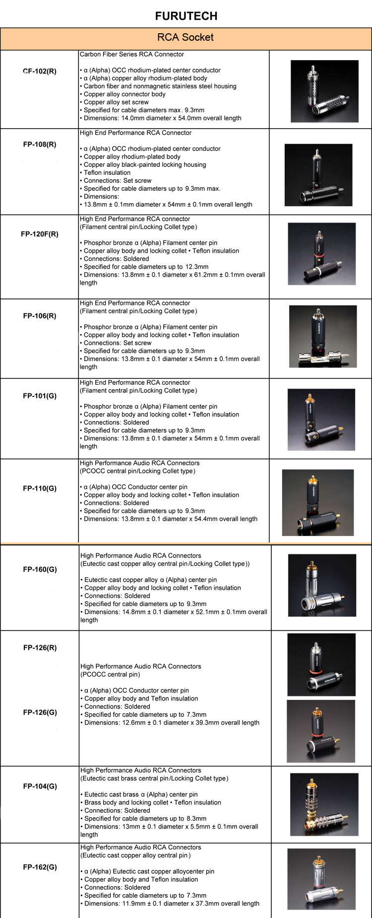 Оригинальный разъем RCA Furukawa FURUTECH FP120(R) с родиевым покрытием, большой диаметр провода 12,3 мм, разъем типа лотос