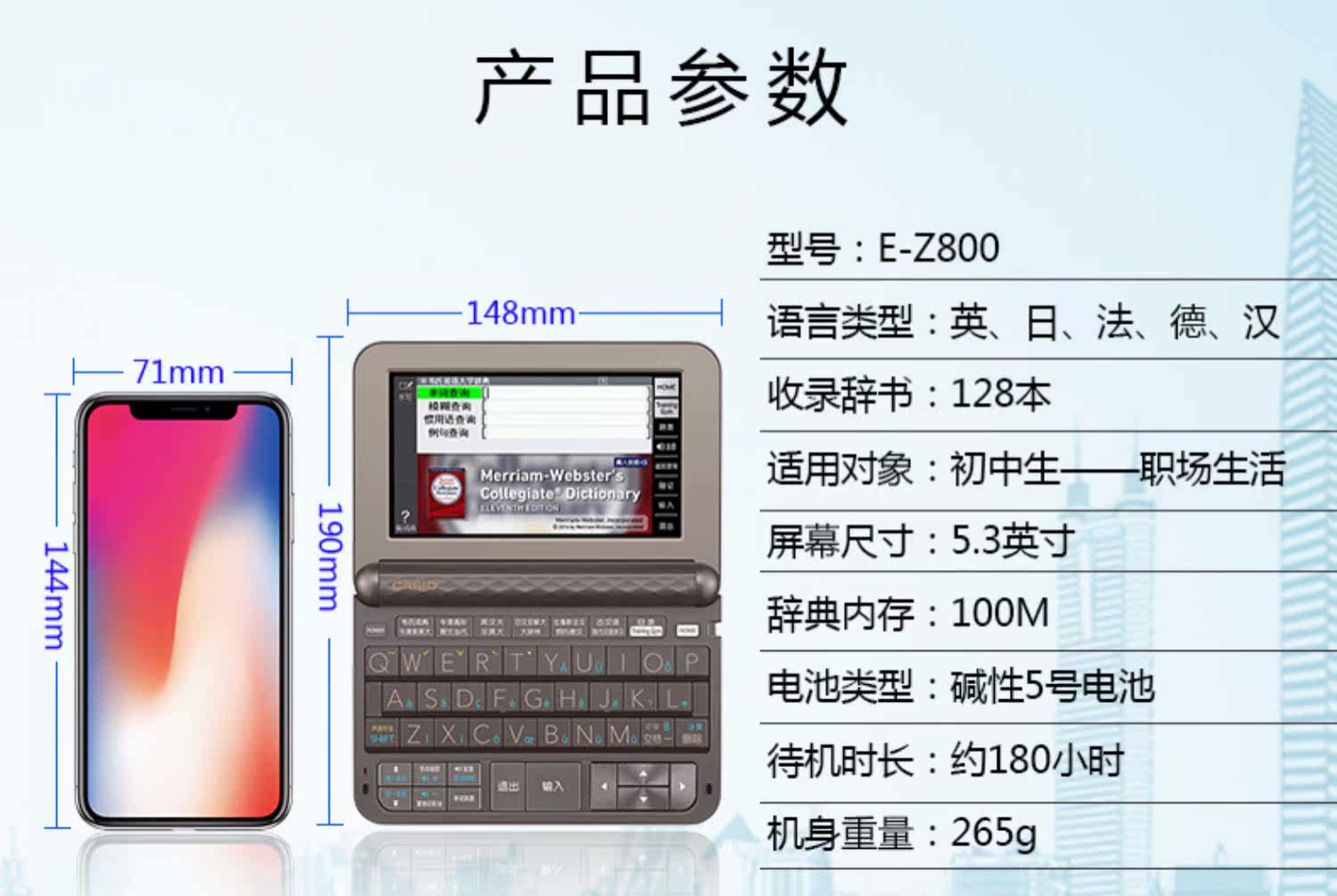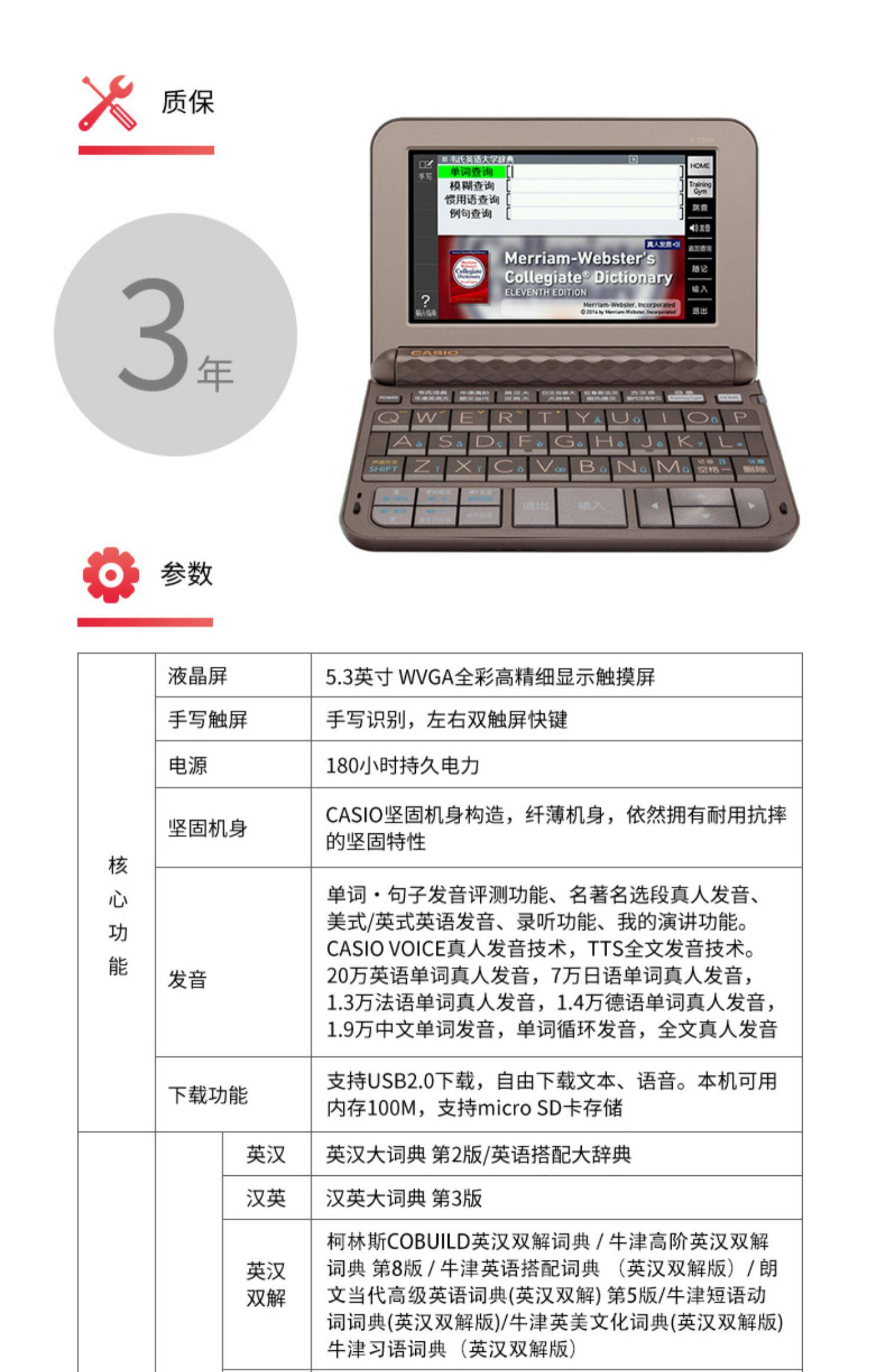 Casio Electronic Dictionary E-Z800 Учебная машина Британская Япония, Франция, Dehan Dictionary EZ800