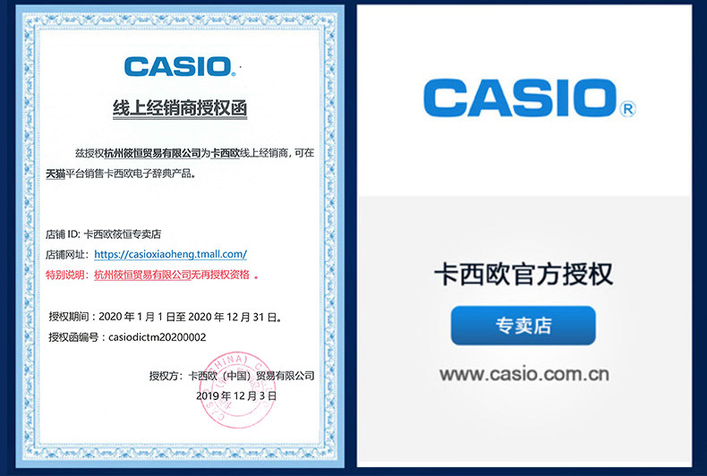 Продавец:卡西欧筱恒专卖店