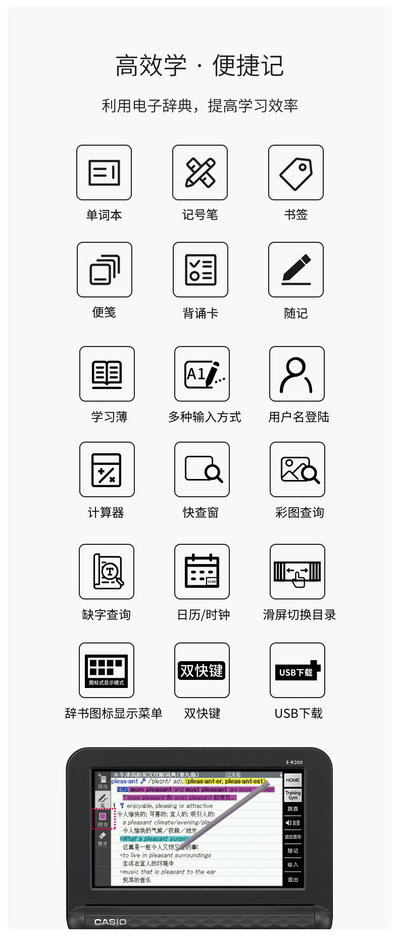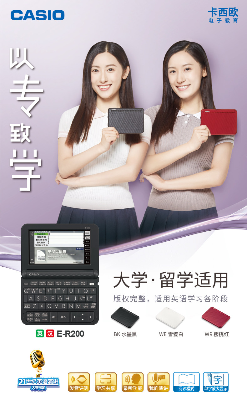 Casio E-R200 Электронный словарь Студент английский аппарат произношения английский китайский Оксфордский словарный словарю за рубеж