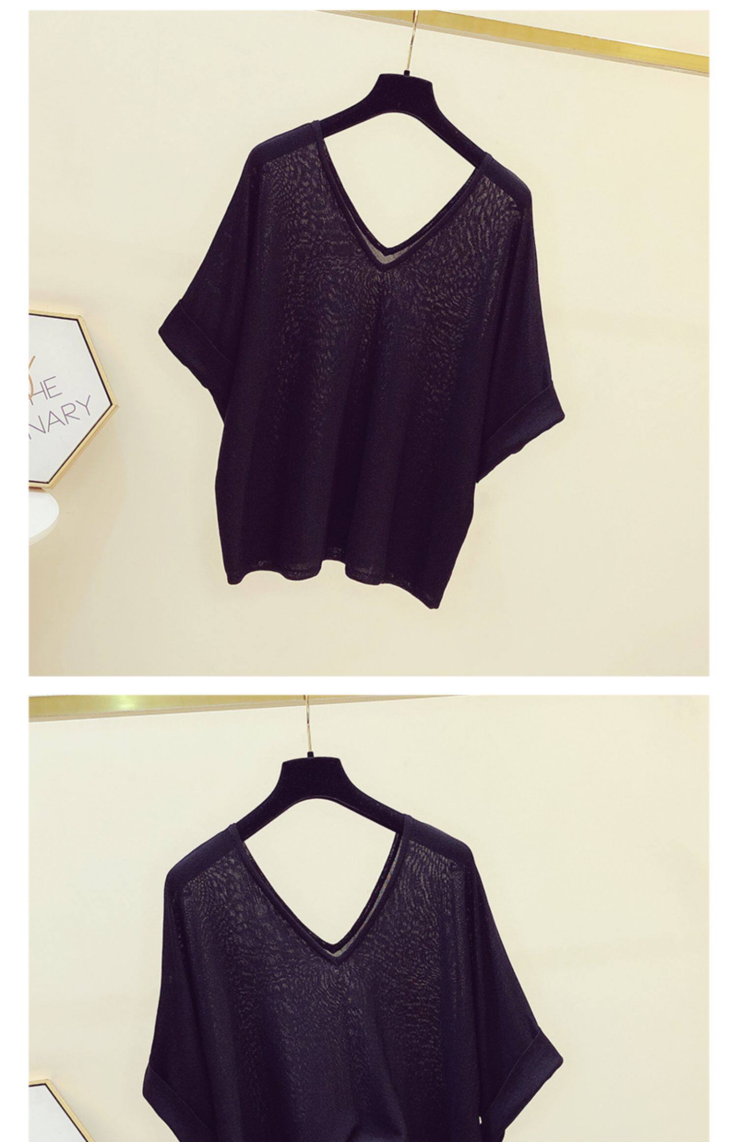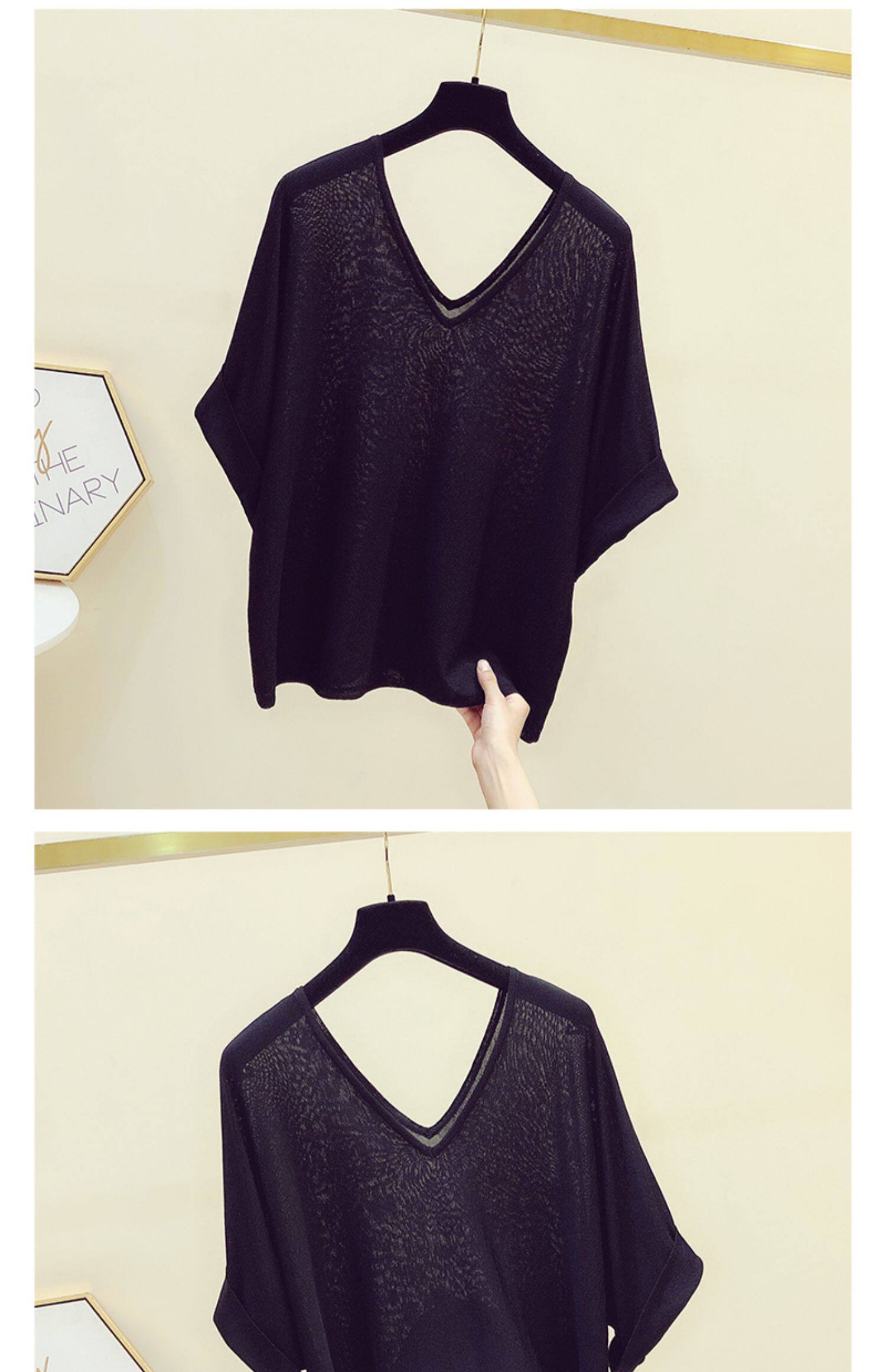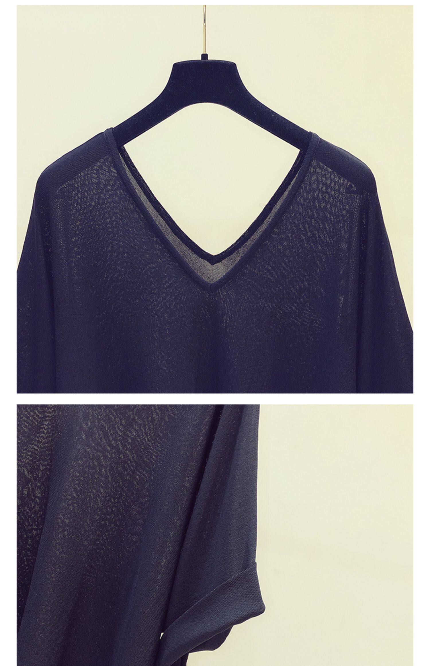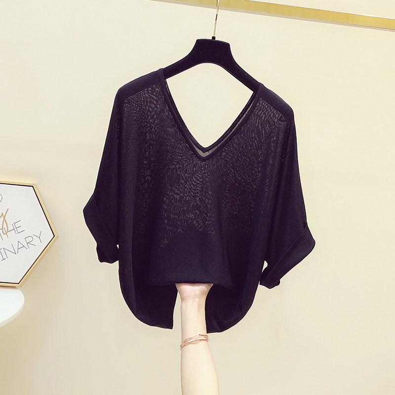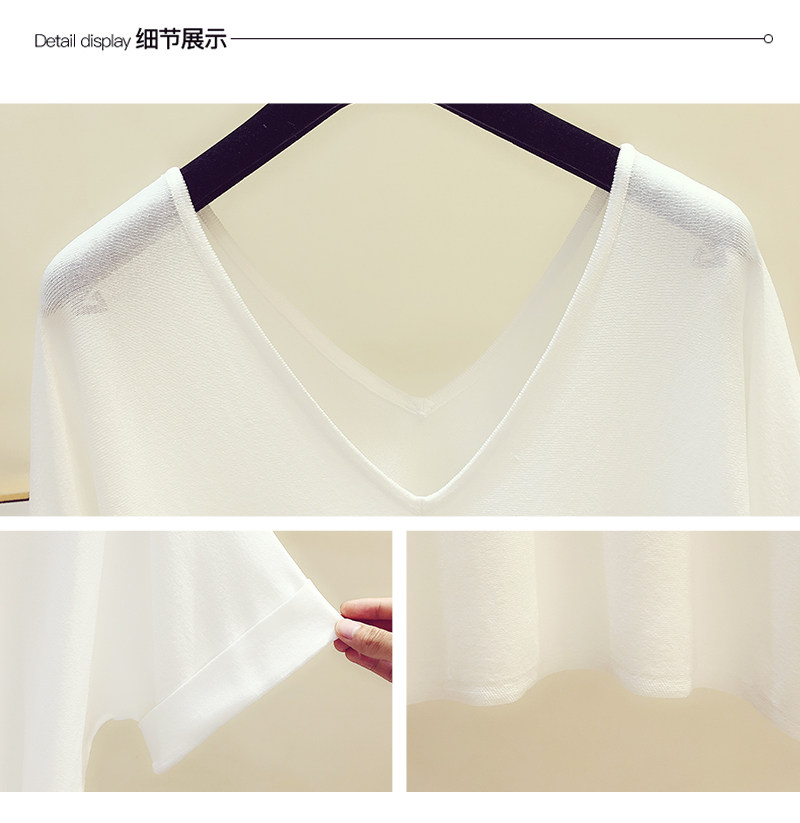 Трикотажный летний свитер, летняя тонкая футболка с коротким рукавом, в корейском стиле, V-образный вырез