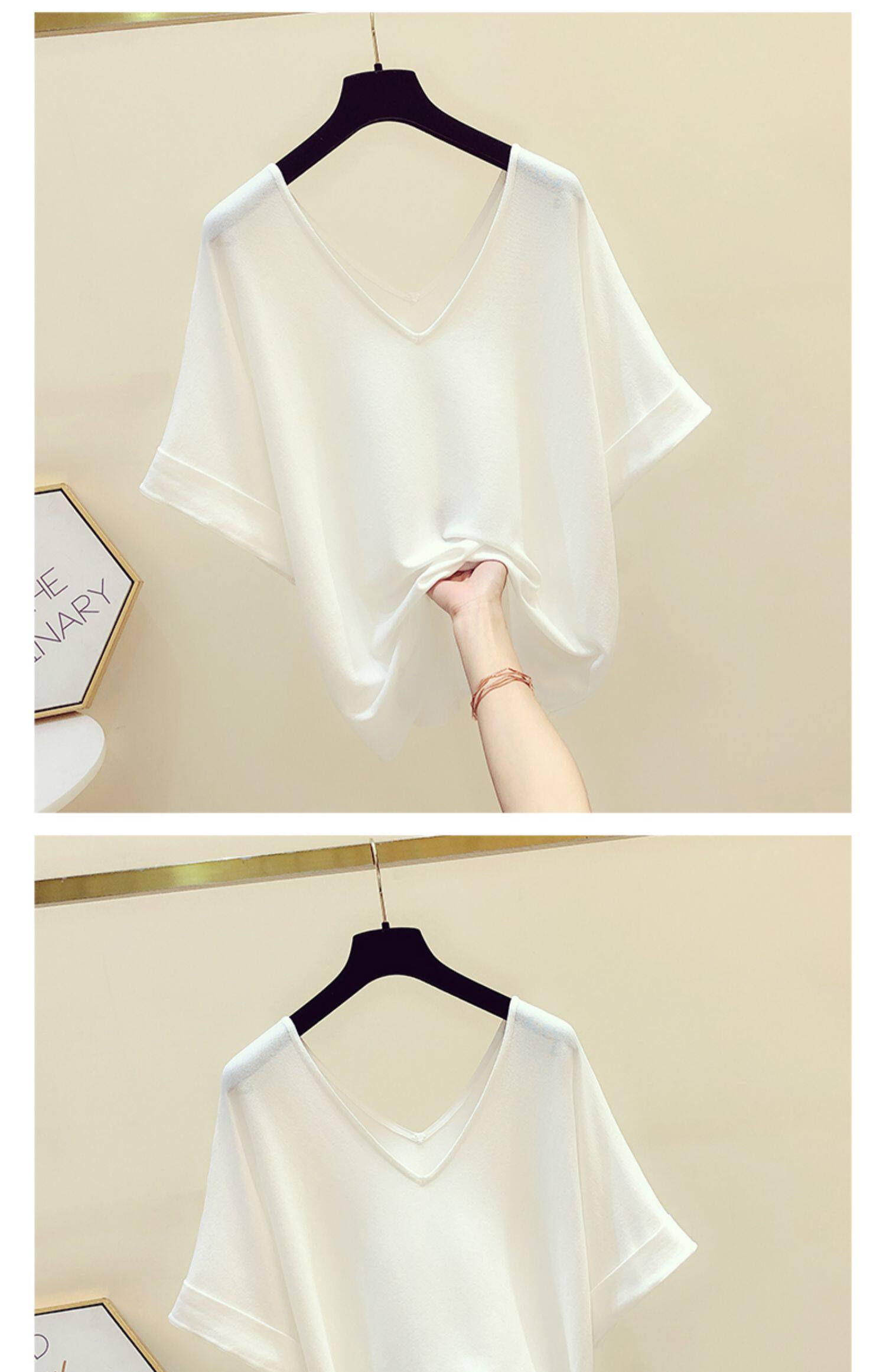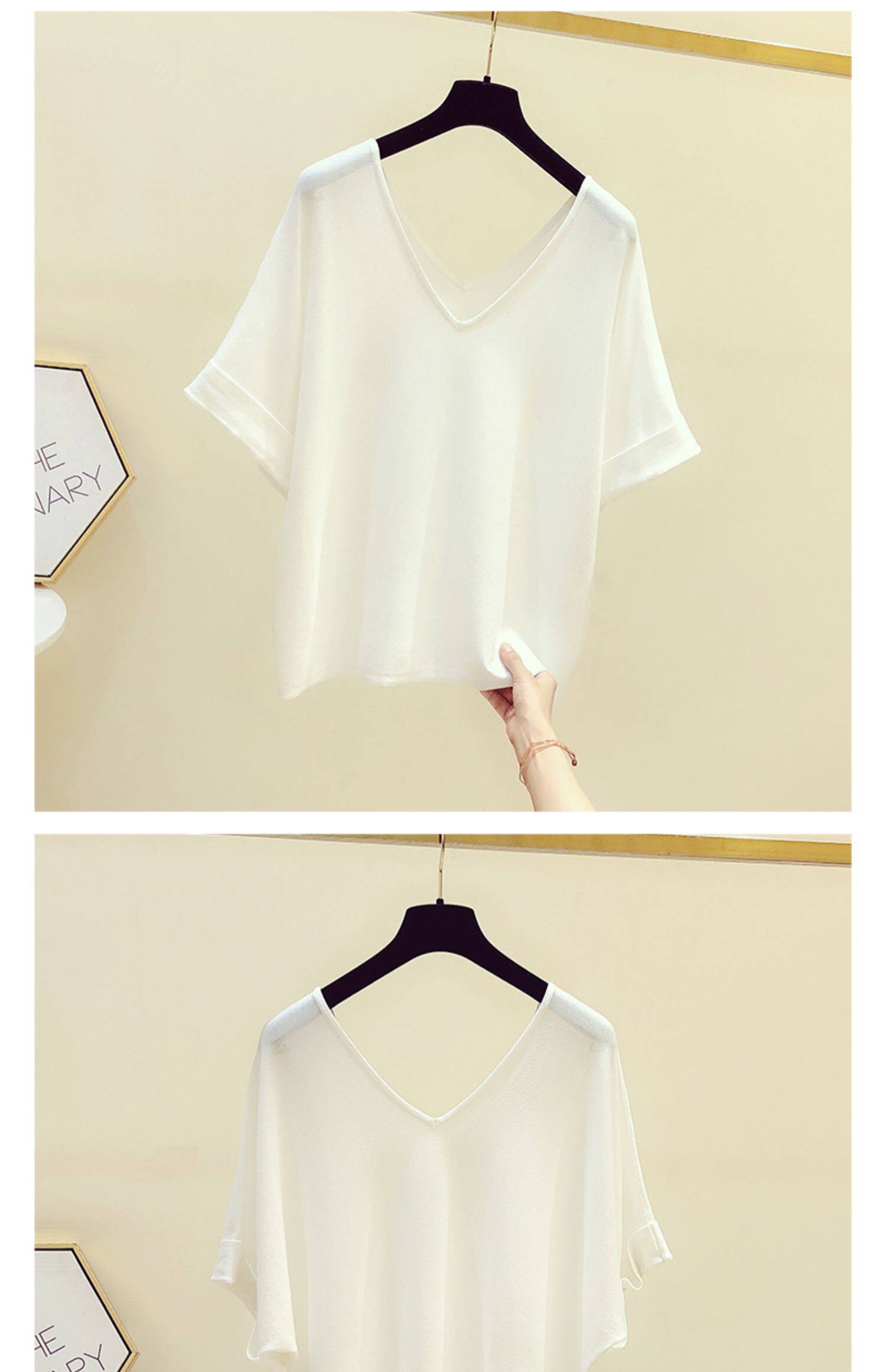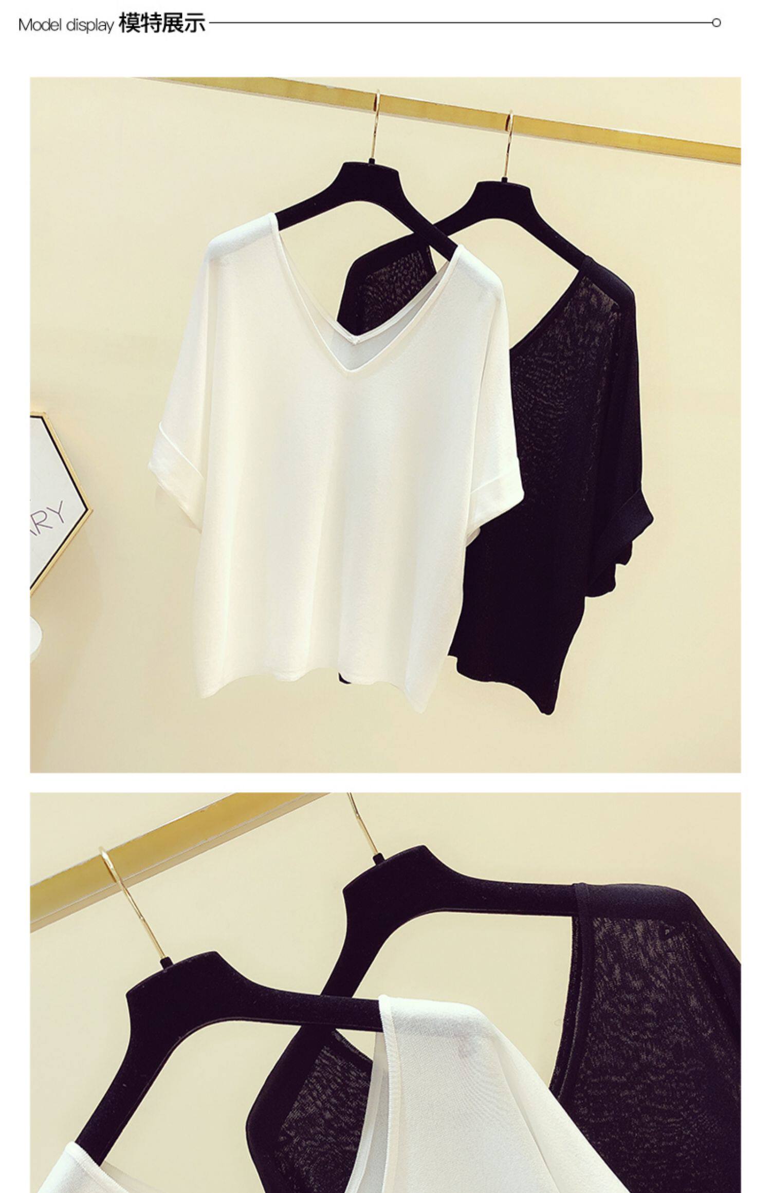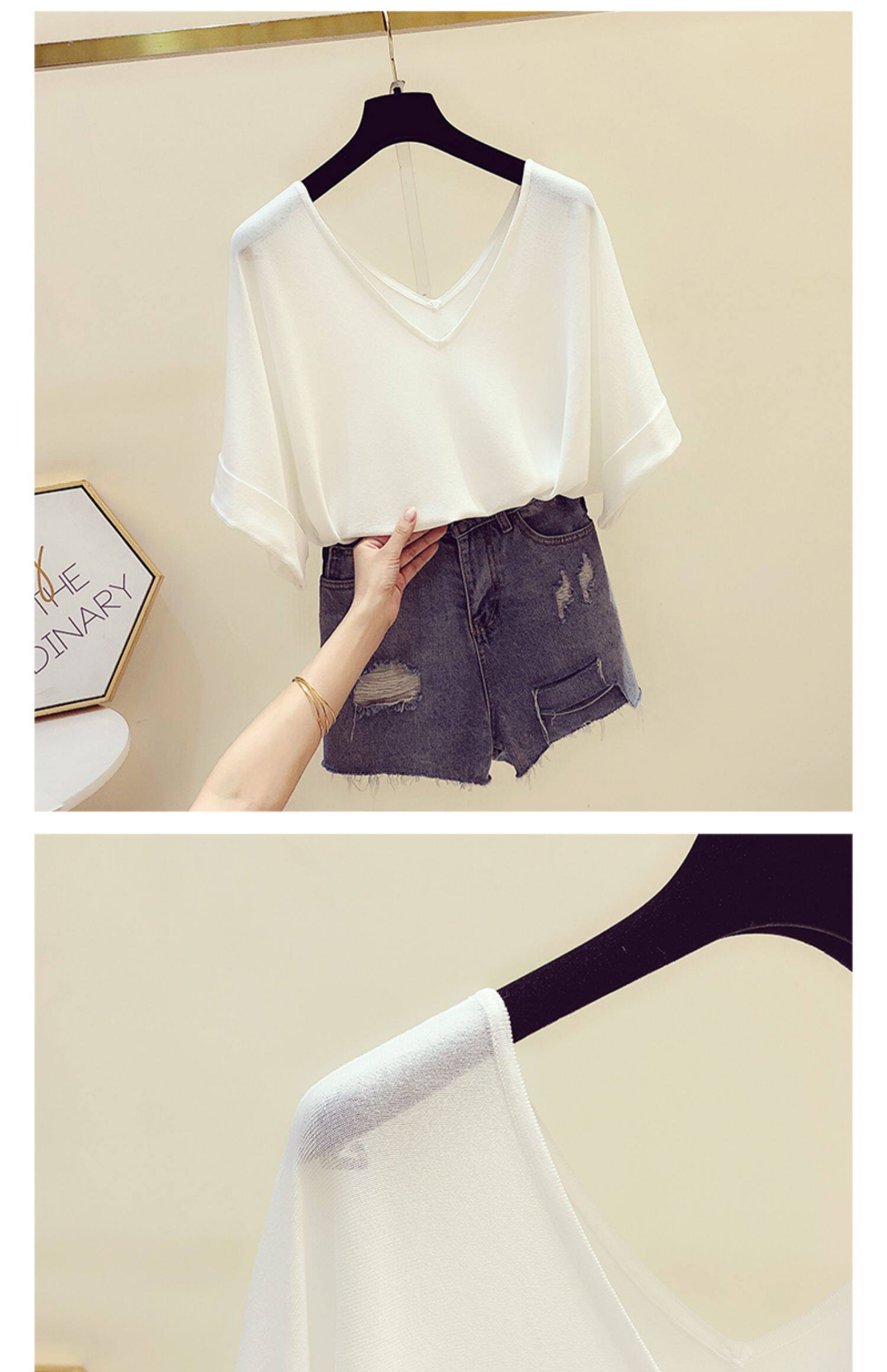 Трикотажный летний свитер, летняя тонкая футболка с коротким рукавом, в корейском стиле, V-образный вырез