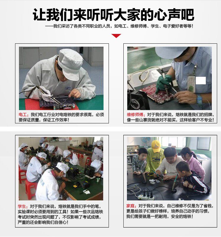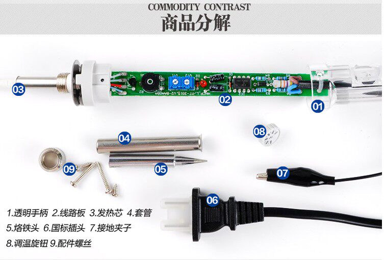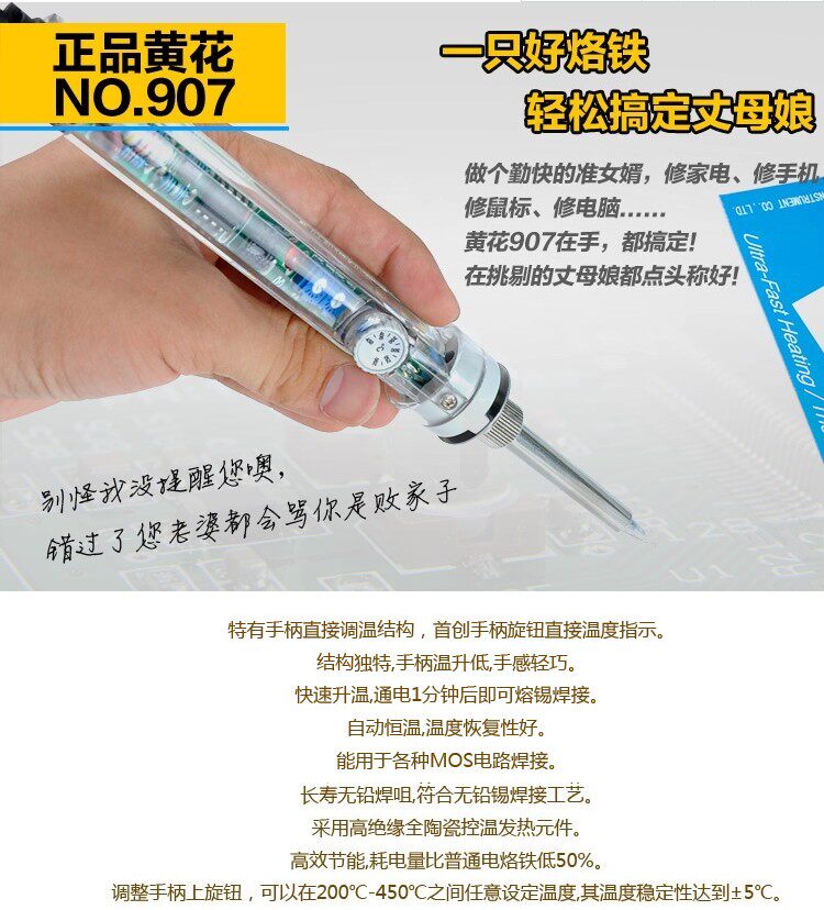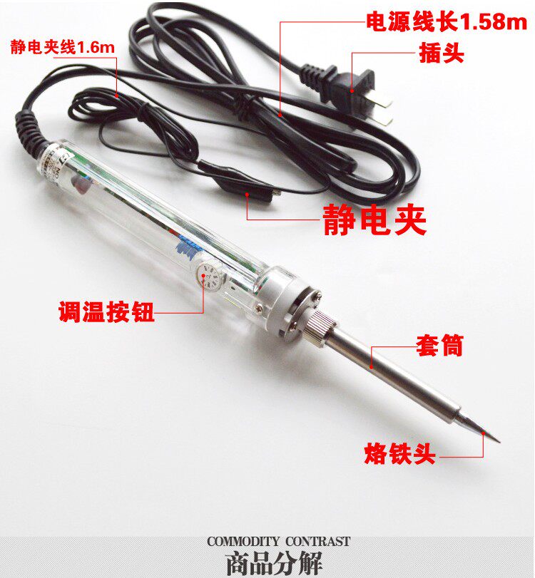 Electric Brand Iron является одним из незаменимых инструментов для электронного производства и технического обслуживания. Обычно используемый электрический железо делится на два типа: внешний тепловой и внутренний тип тепла.Обогрев ядра внутреннего термического электрического железа находится в бренде пайки с железом.Мощность электрического паяльного железа должна определяться размером точки сварки. Площадь припоев большой Также должно быть больше.Как правило, мощность электрического железа составляет 20 Вт 25 Вт 30 Вт 35 Вт 40 Вт 50 Вт 60 Вт и так далее.Парки сварки печати могут использовать электрическое железо 20-40 Вт, металлическое дно или относительно большой компонент и могут использоваться для 40-60 Вт.В соответствии с тем, может ли температура контролировать температуру, также продаются температура железа и нерегулируемого железа паяльника. В продаже магазин имеет различные внутренние и внешние горячую температуру, адаптированные термостатами.Температура гладкого железа велика, как правило, при 40-60 Вт. Поскольку диапазон температуры составляет около 100-450 ° C, его можно отрегулировать, поэтому он может удовлетворить сварки потребностей различных компонентов размера.Кроме того, большая часть температурного паяльного железа сопровождается наземными проводами, так что паяльное железо обладает хорошими характеристиками заземления, устраняет статическую электричество и предотвращает компоненты повреждения. Он очень подходит для ремонта точной сварки, такой как мобильные телефоны, мобильные телефоны, мобильные телефоны, мобильные телефоны, Компьютерные материнские платы и аудио.