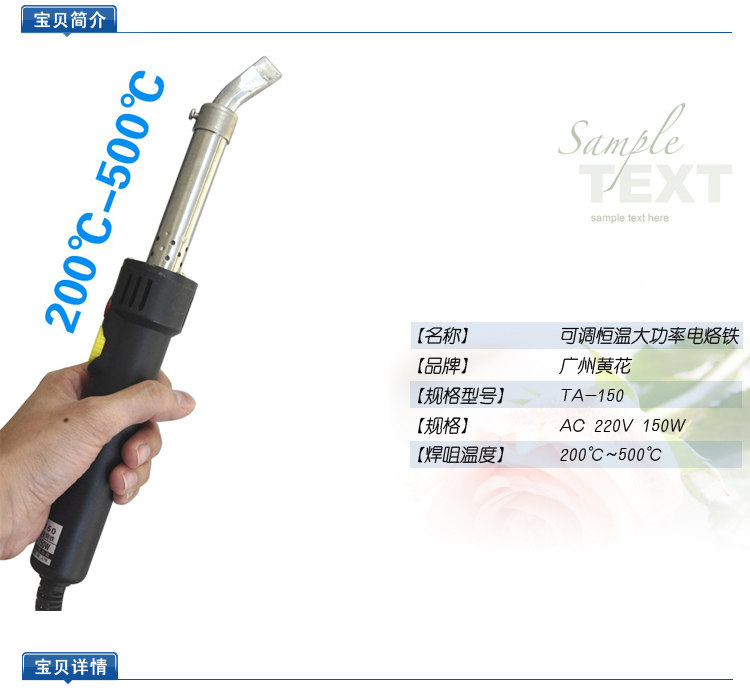 Huanghua gaojie ta-150 Внешний тепловой паяльник Железо длинный срок службы постоянная температура с высокой мощностью ручка для домашнего использования