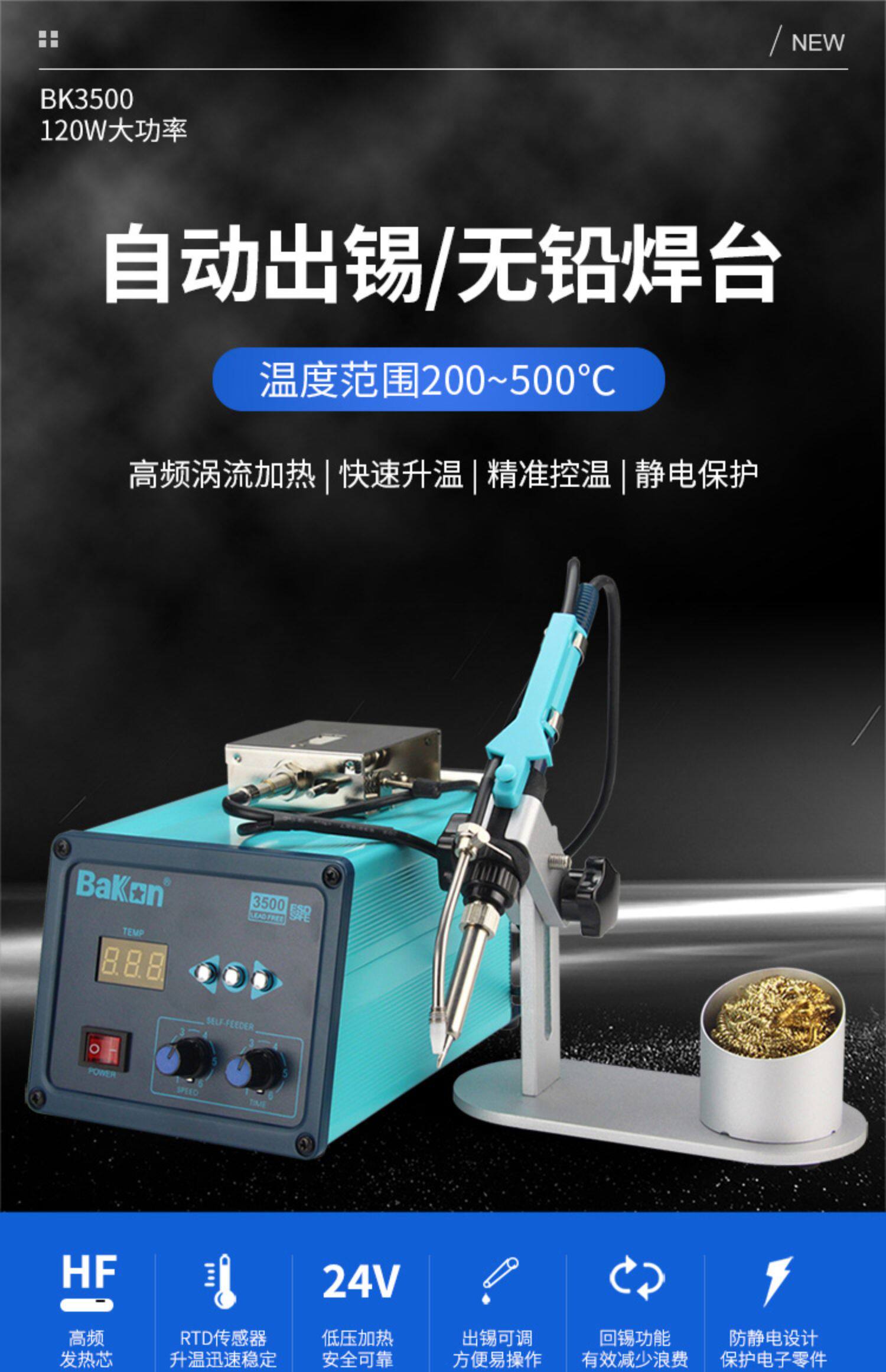 Белый свет BK3500 Автоматическая сварочная машина из жестяной электрической пайки для отправки жестяной сварки Таблица 120 Вт Постоянная регулировка температуры Высокая частота