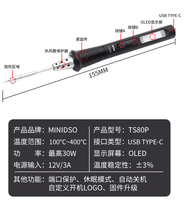 TS80p Сварная электрическая железо PD2.0 Питания QC3.0 мини -электрический железо портативный набор TS80PMORE