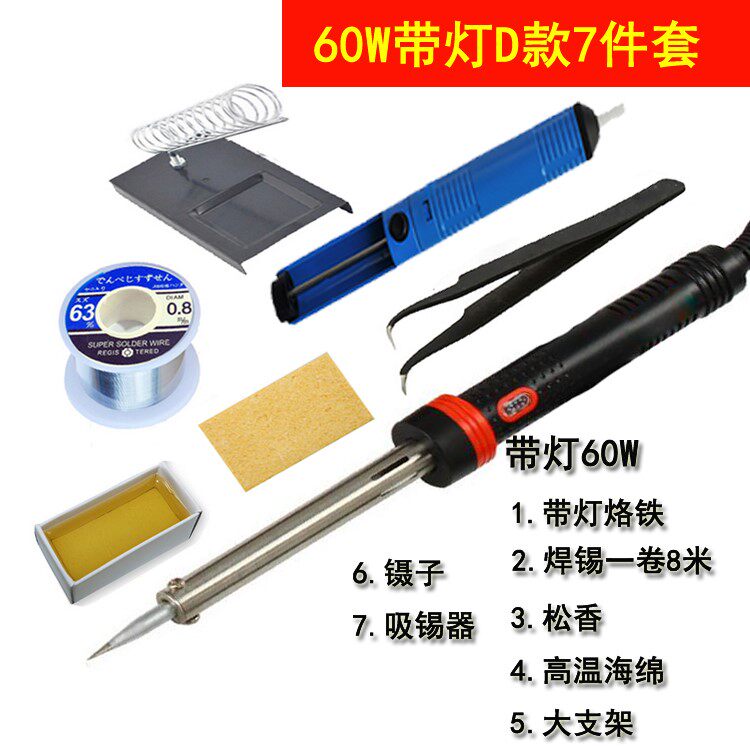 Набор электрических паяльников, паяльная ручка, сварка, ремонт электроники, электрический паяльник, оловянная проволока, канифоль, бытовой студенческий паяльник 60 Вт с подсветкой