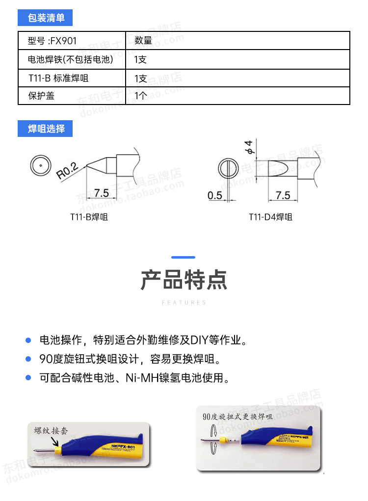 Япония Baiguang Hakko Оригинальная батарея батарея FX901 Служба дивизионной службы DIYER Электронная сварка Студент Портативный студент