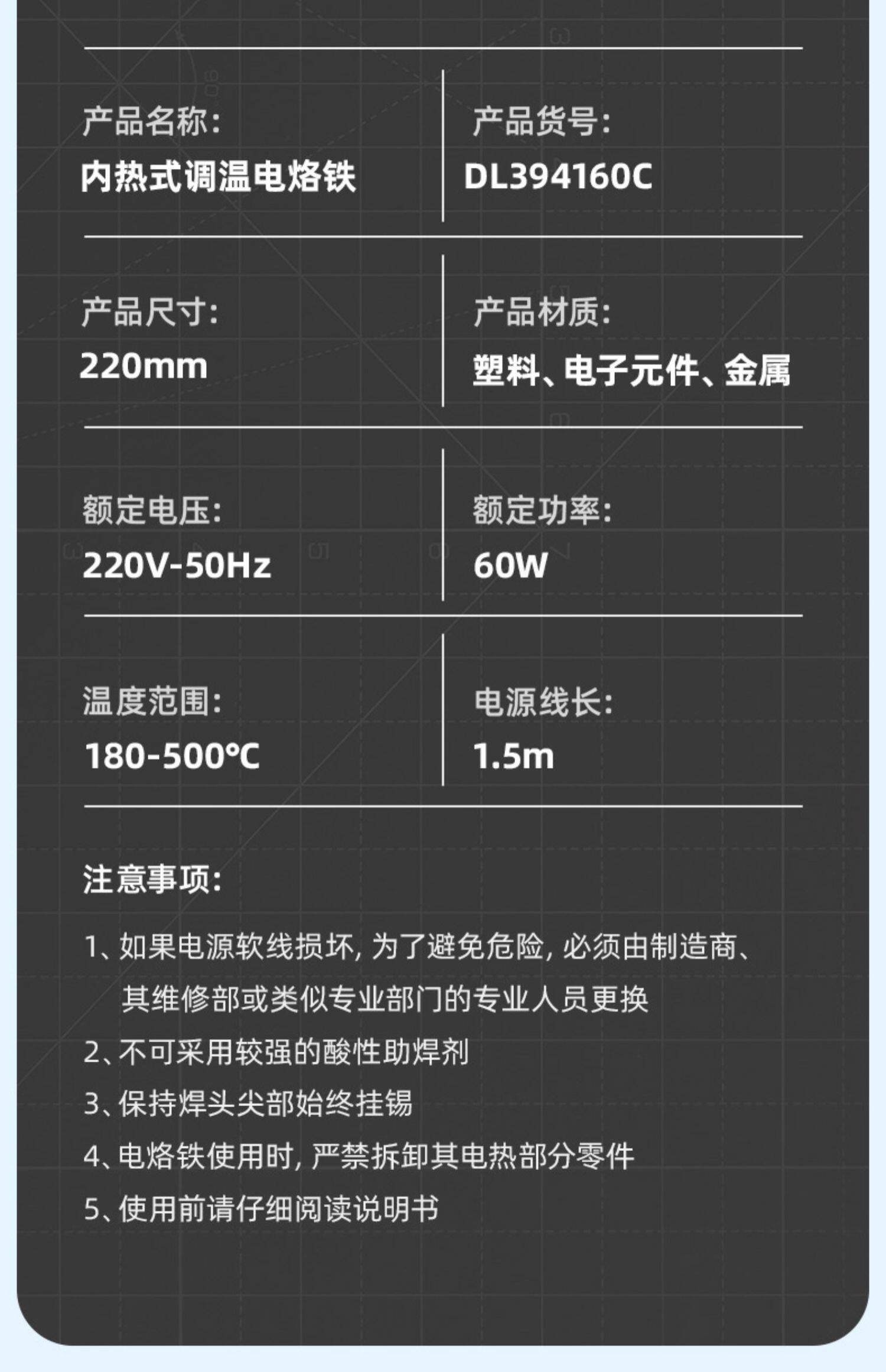 - 【Регулировка температуры цифрового дисплея】 60 Вт (180-450 ℃) Внутренний тепловой тип DL394160C
