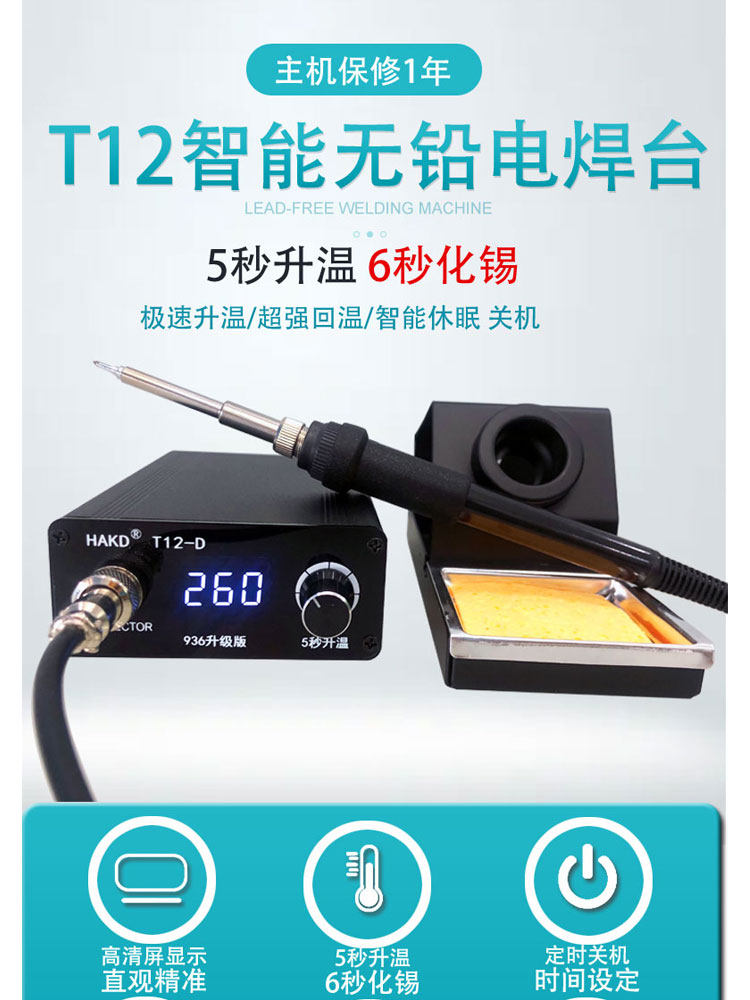 Германия и Япония Импортированные технологии белый свет T12 Сварная платформа солдаты мини -высокий уровень мощности показал постоянную температуру паяль