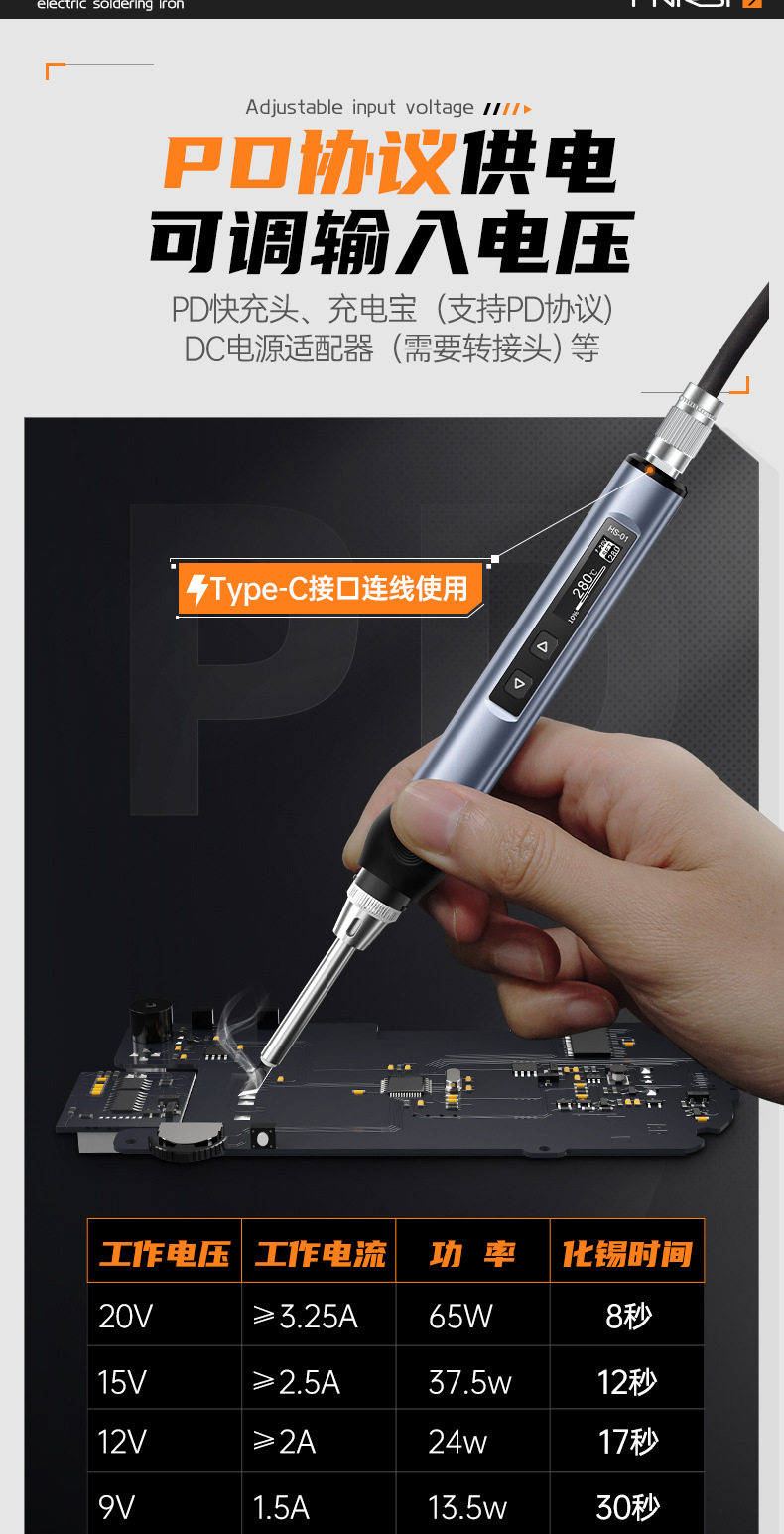 FNIRSI Smart Electric Splering Iron Portable Mini Welding Platform Pd65W Внутреннее тепловое число, показывающее сварку постоянного ремонта температуры