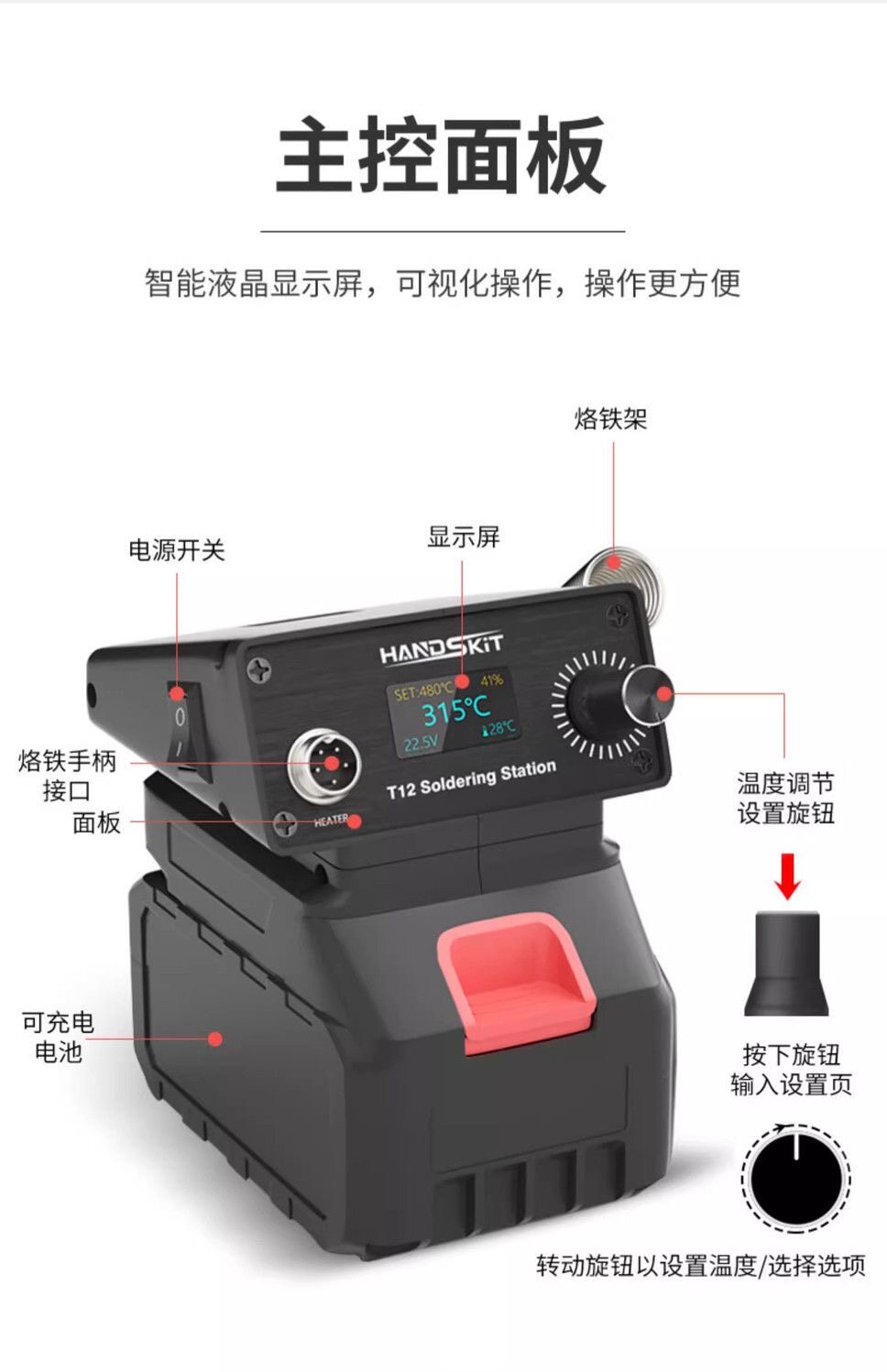 Подходит для DEVON20V, сварочная станция с литиевой батареей, интеллектуальный цифровой дисплей, регулировка температуры, ремонт, небольшая портативная электрокаутерная ручка