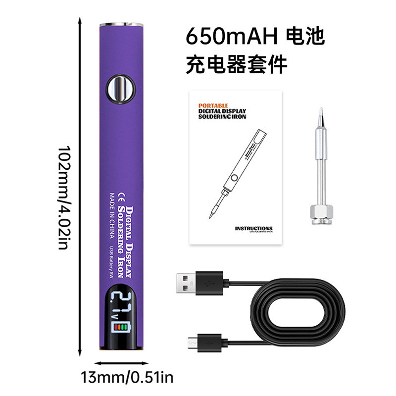 Удобный USB-паяльник 650 мАч с дисплеем, трехскоростной регулировкой напряжения, разъемом 510, беспроводной гладильной ручкой с крышкой