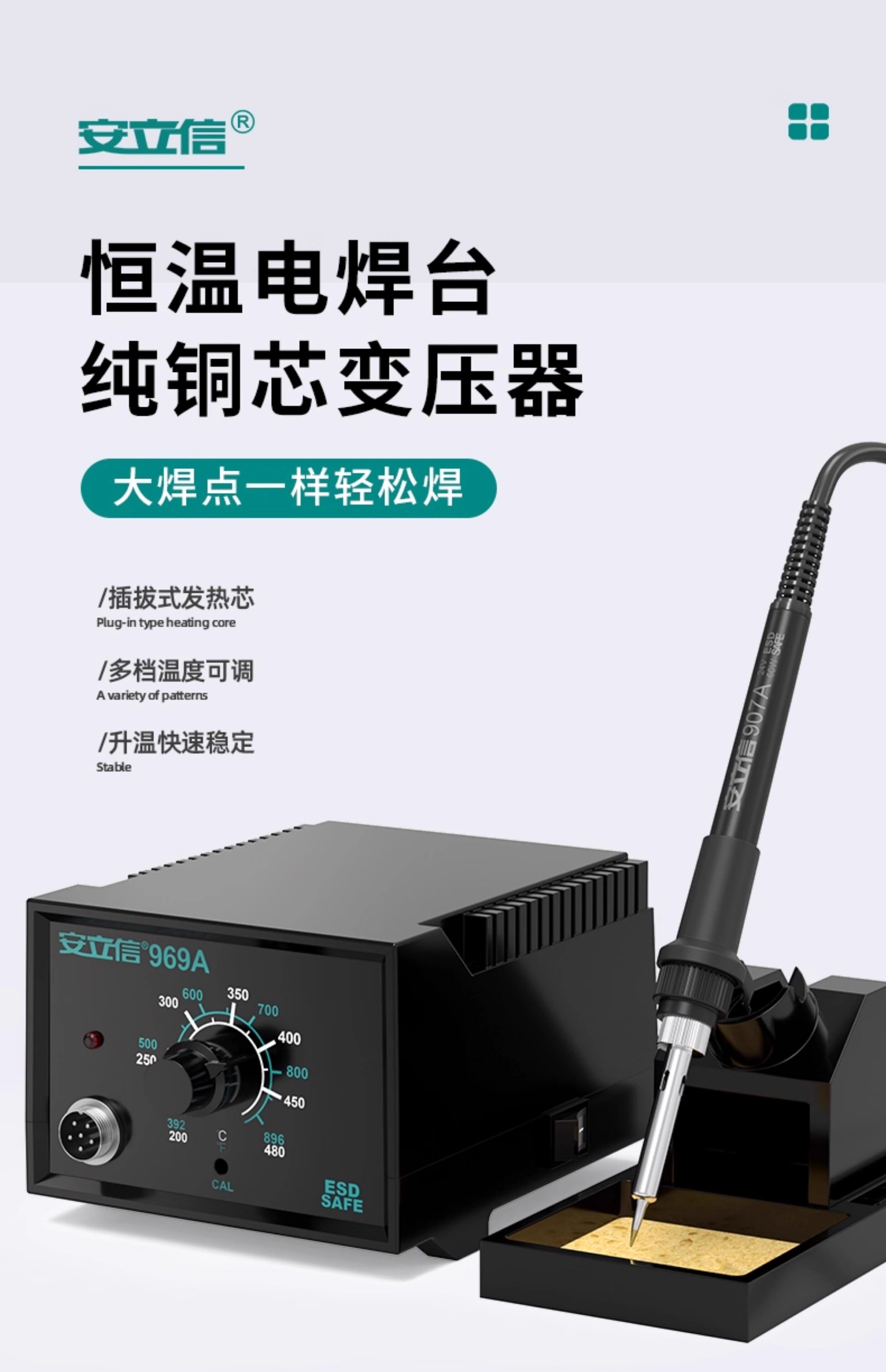 Электрический паяльник Anlixin 969A с постоянной температурой, мощная электрическая паяльная станция с регулируемой температурой, бытовой небольшой инструмент для ремонта, электрический паяльник